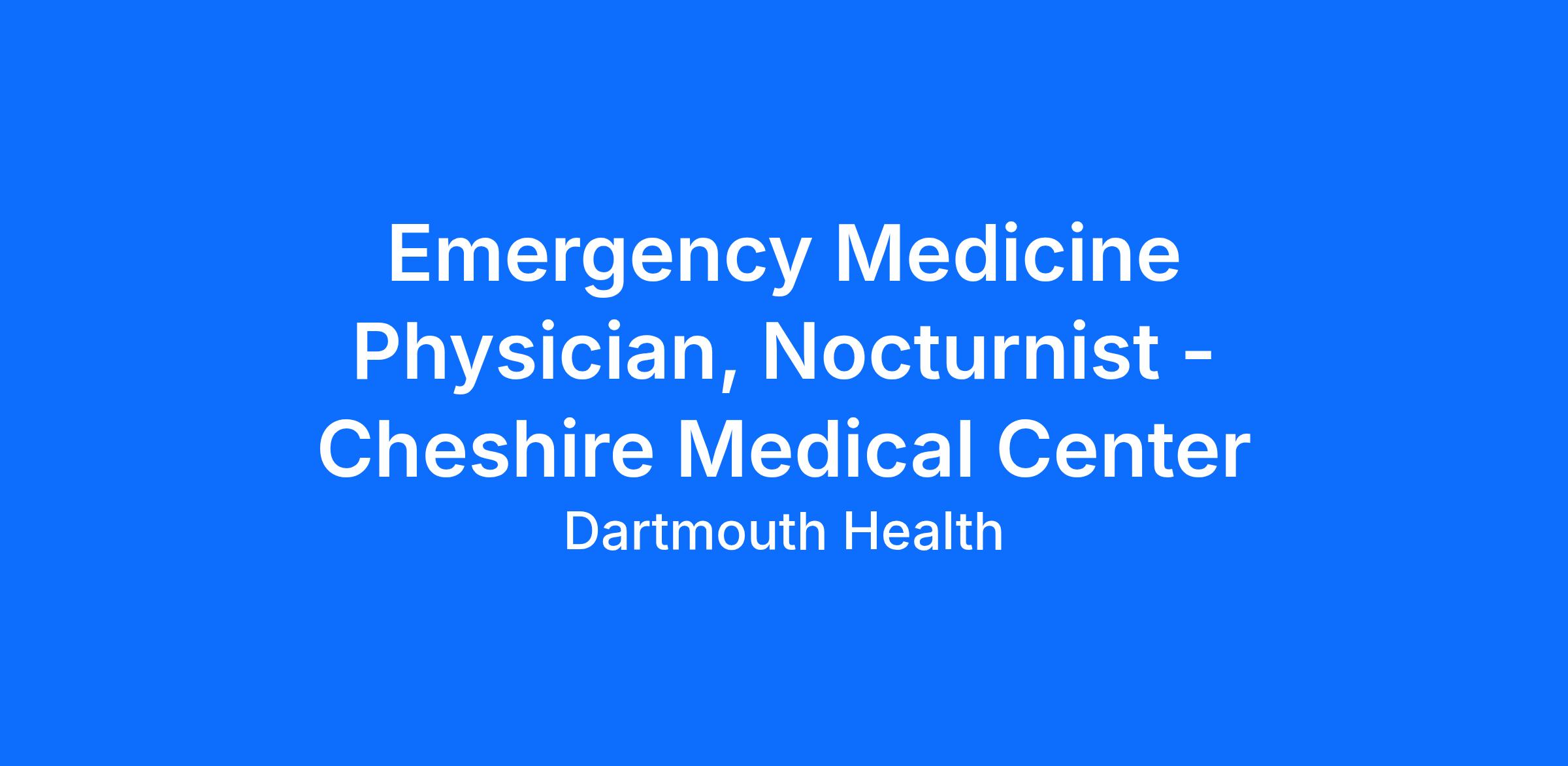 Cheshire Medical Center is seeking a dedicated and energetic ABEM/AOBEM board-certified Emergency Medicine Physician to join our team as a Nocturnist. This position is based at Cheshire Medical Center in Keene, NH, a 169-bed, Level III community hospital with an annual emergency department volume of approximately 28,000 visits.