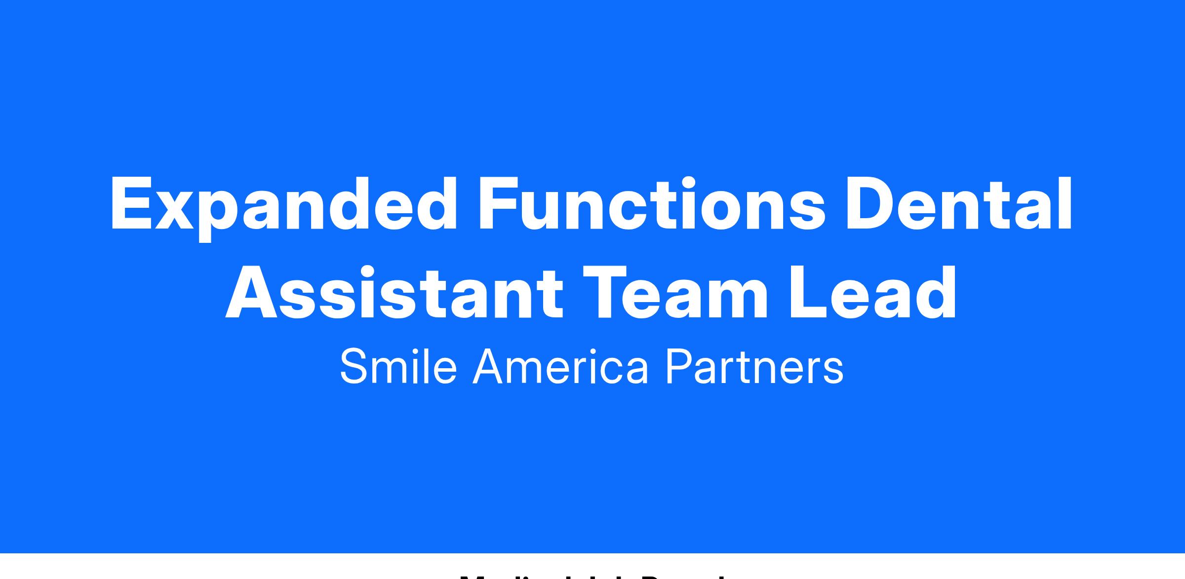 Big Smiles Florida, a school-based mobile dental home, is seeking a Expanded Functions Dental Assistant Team Lead in Jacksonville, FL and surrounding areas to help provide dental care to underserved children at their school.