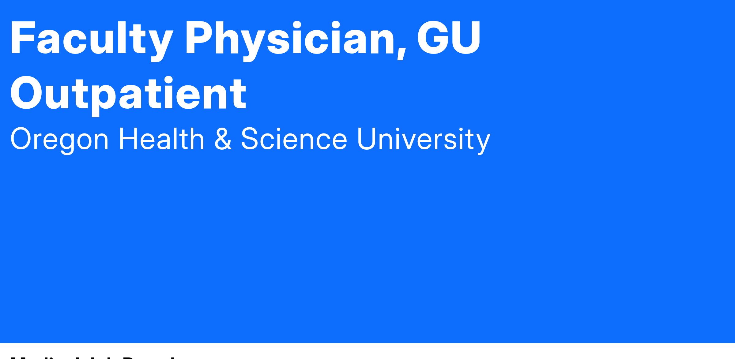 Assistant or Associate Professor level faculty position in the area of GU medical oncology, with a focus on clinical research. This position is to join a robust clinical and translational program at OHSU that has made significant contributions to research in prostate and non-prostate genitourinary malignancies.