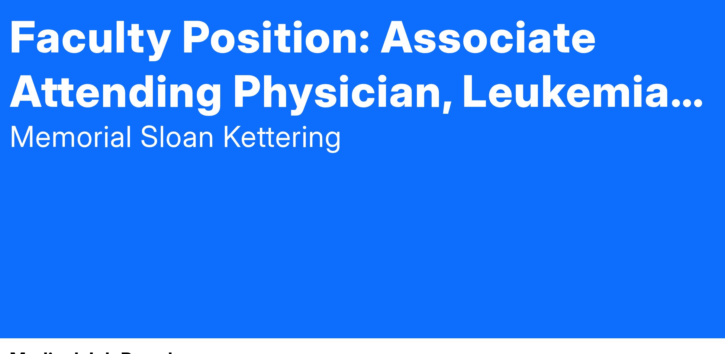Exciting Opportunity at MSK: Associate Attending Physician, Leukemia Service, Department of Medicine