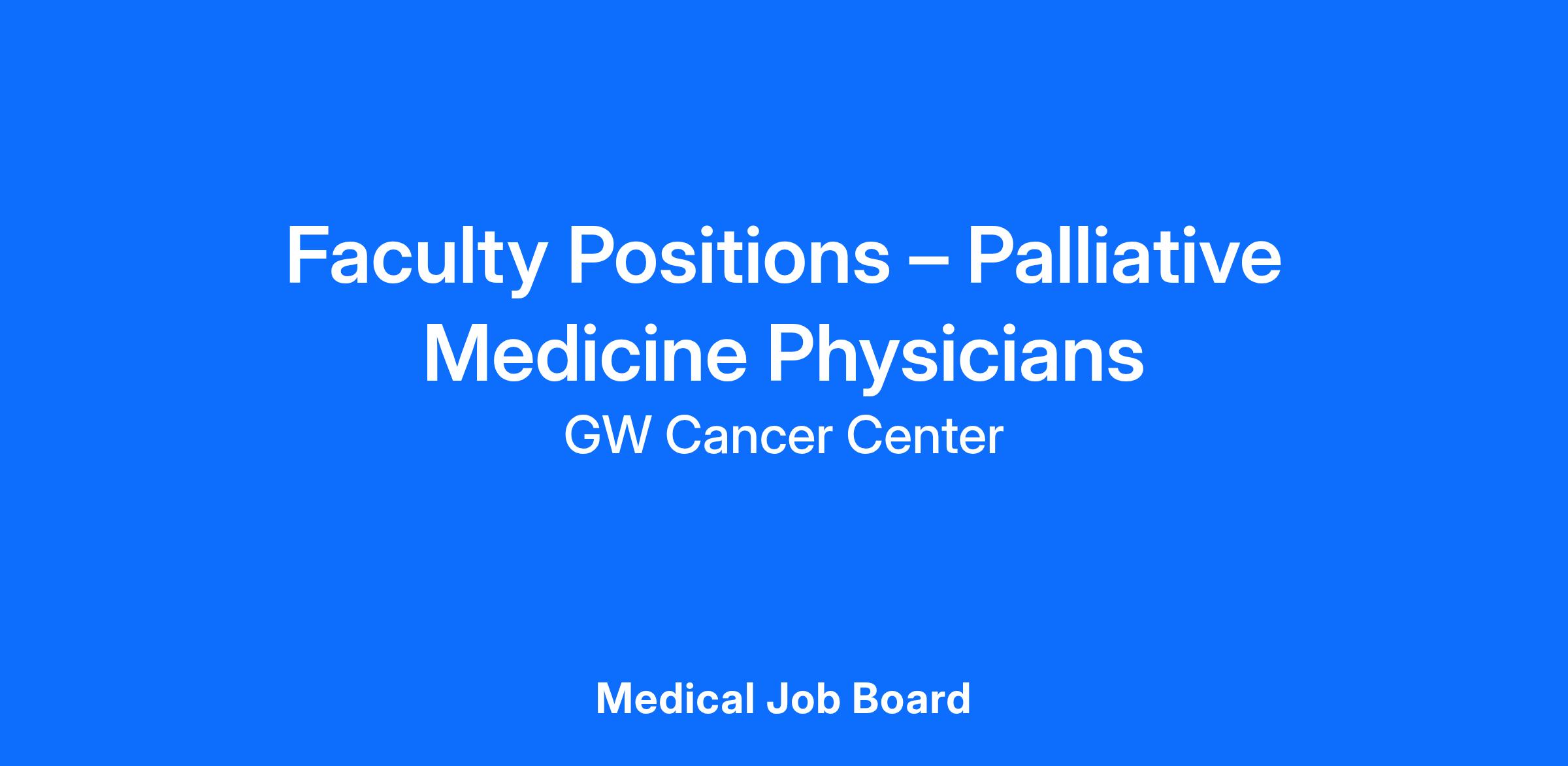 The George Washington University Medical Faculty Associates ( MFA ), an independent non-profit academic clinical practice group affiliated with George Washington University, is seeking full-time academic Palliative Medicine physicians for the Division of Geriatrics and Palliative Medicine in the Department of Medicine, part of our expanding academic practice and clinical programs. Our practice includes a robust inpatient palliative medicine consult service serving a tertiary care hospital, a community-based inpatient hospice unit, and an outpatient supportive and palliative care clinic. These non-tenure track appointments will be made at a rank (Instructor, Assistant, Associate, Full Professor) commensurate with experience.