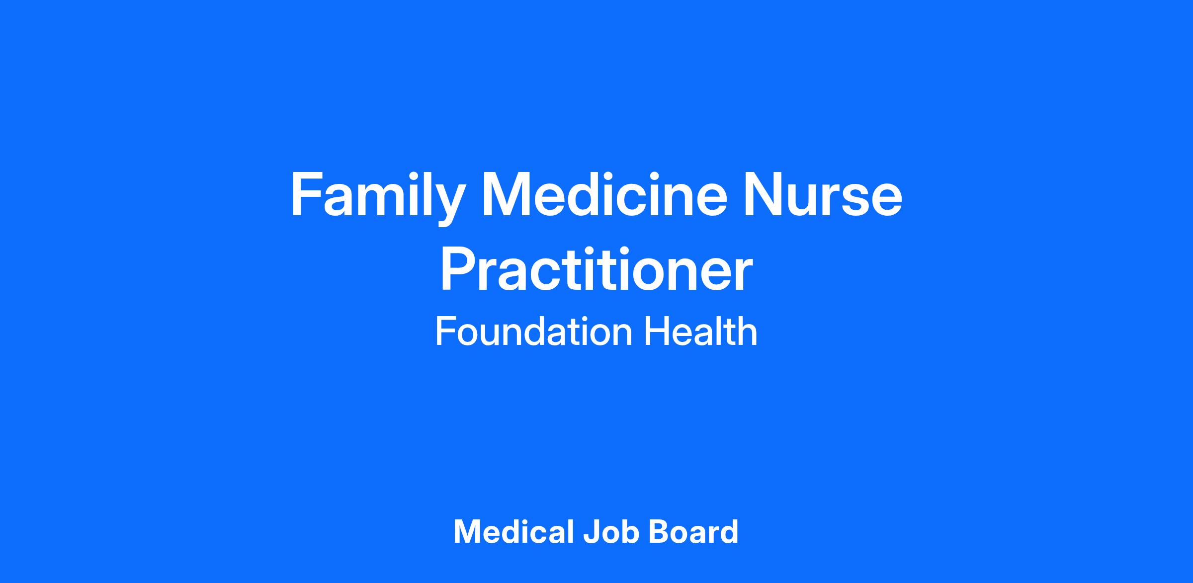 Foundation Health Partners is actively recruiting an ambitious Family Nurse Practitioner to join our Outpatient Family Medicine Team.