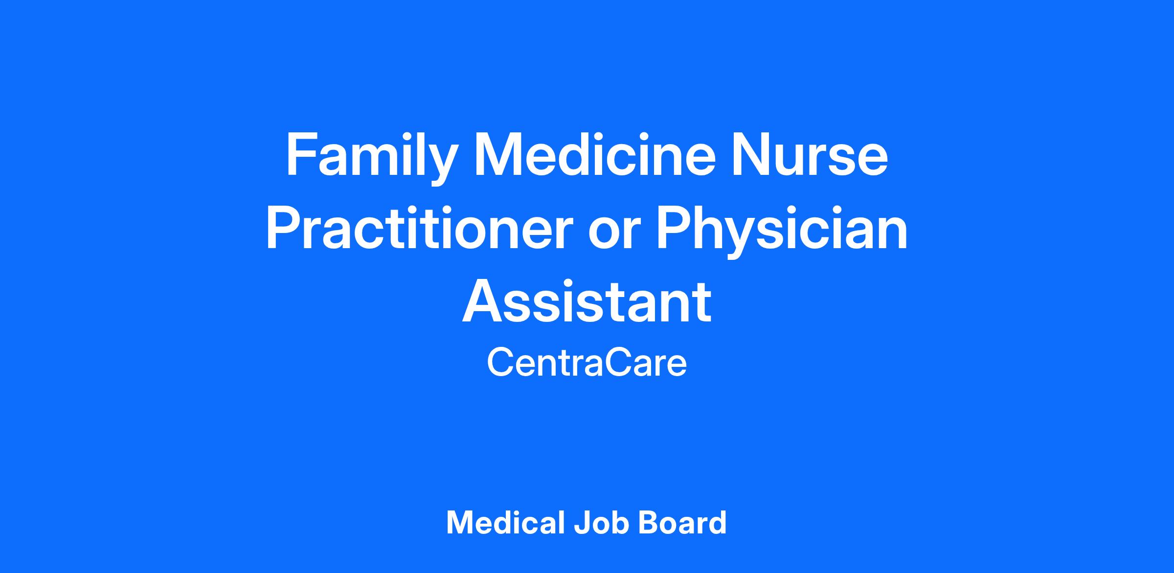 Join a team where your expertise and compassion make a daily impact. CentraCare – Clearwater is seeking a Family Medicine Advanced Practice Provider (NP or PA) to join our collaborative primary care team. You will provide comprehensive, team-based care that supports the Quadruple Aim — improving patient outcomes, enhancing patient and provider experiences, and ensuring cost-effective care.