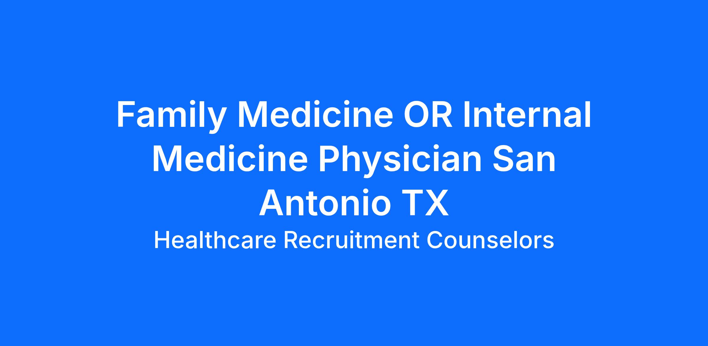 Family Medicine OR Internal Medicine Physician San Antonio TX Urgently Hiring We are looking for a Family Medicine or Internal Medicine Physician to join our medical team full time at our offices in San Antonio TX. Ideally, we need a physician who is interested in examining, diagnosing, and treating patients with venous insufficiency, lymphedema, arterial disease, lipedema, blood clots, and helping patients’ leg’s function and feel better. Ultrasound knowledge and procedure experience is helpful, but we are willing to train the right candidate. Must have excellent interpersonal skills, fantastic patient rapport, trustworthy, be interested in learning, growing, and providing the highest level of care alongside our dedicated multidisciplinary team and support staff. We are looking for a physician who can not only deliver top-tier medical care but also provide outstanding patient service, build immediate rapport, and actively engage in the local medical community. Join our dedicated team in a state-of-the-art facility focused on providing comprehensive and cutting-edge care for patients with complex vascular conditions in the heart of San Antonio, Texas. We have a large Spanish speaking patient population, so a physician who is bilingual would be preferred.