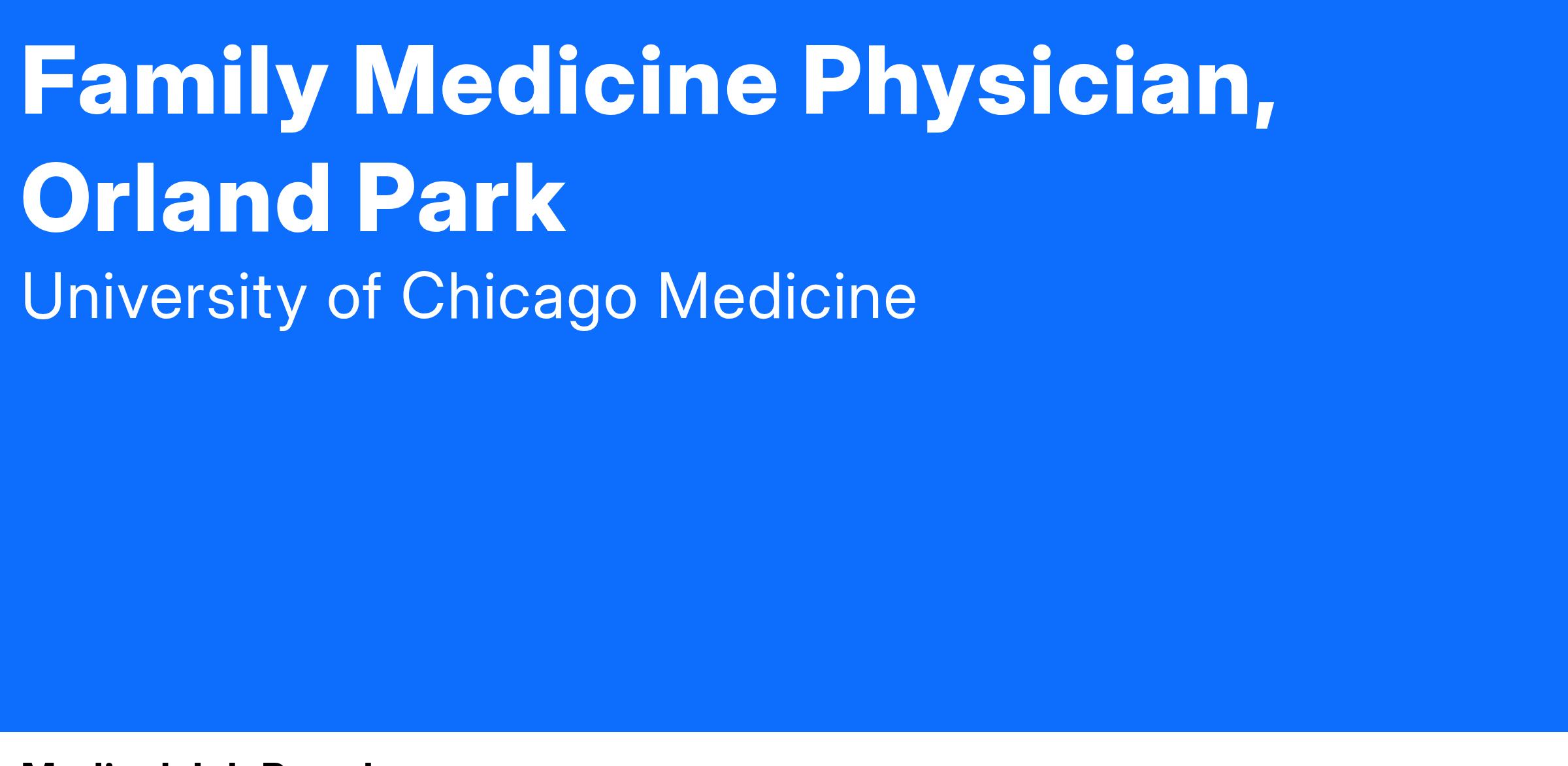 UChicago Medicine Medical Group seeks an exceptional Family Medicine Physician for our outpatient practice in Orland Park, IL.