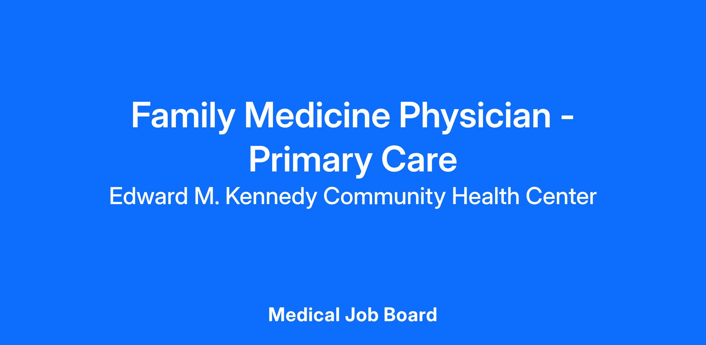 SummaryThe Family Physician is a member of the clinical practice team and works collaboratively with other staff members to provide high quality patient care according to the PCMH model. The Family Physician will lead the care for their own diverse panel of patients. This Provider will manage chronic diseases and treat acute conditions in patients across the full life span. Family Medicine Physicians at Kennedy Community Health will have the opportunity to work in partnership with the numerous other disciplines offered at the health center including mental and behavioral health, pharmacy, OBAT program, Reproductive Health, Dental and Optometry.