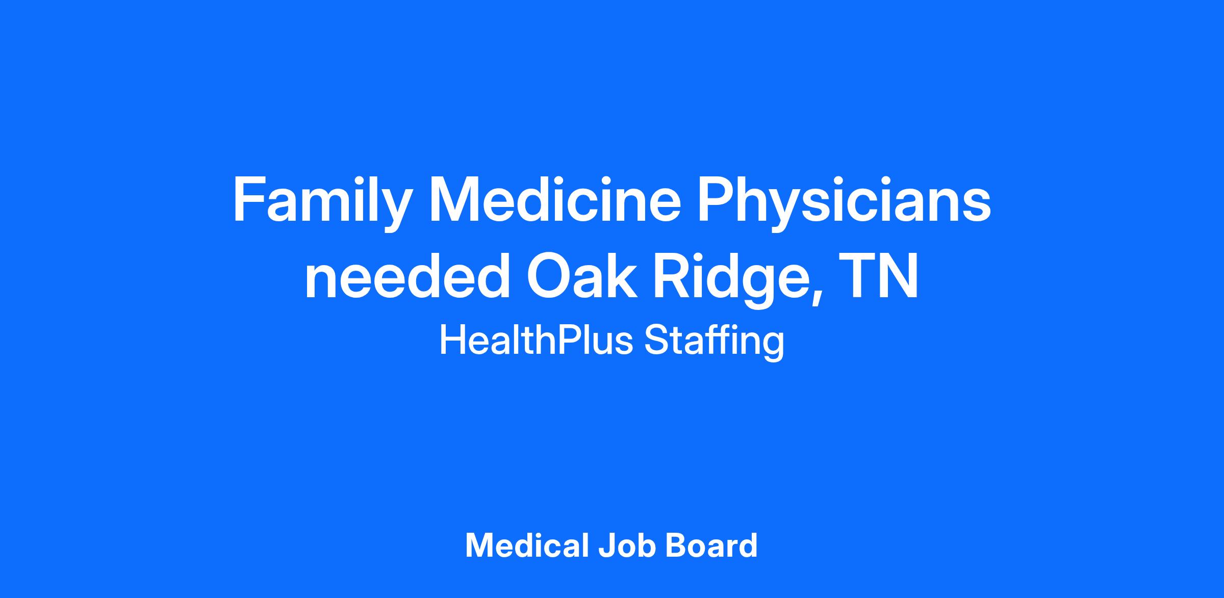 HealthPlus Staffing is assisting a Primary Care group in Oakridge, TN that is looking for a Family Medicine Physician to join a busy established practice. Please find some details below:Ā