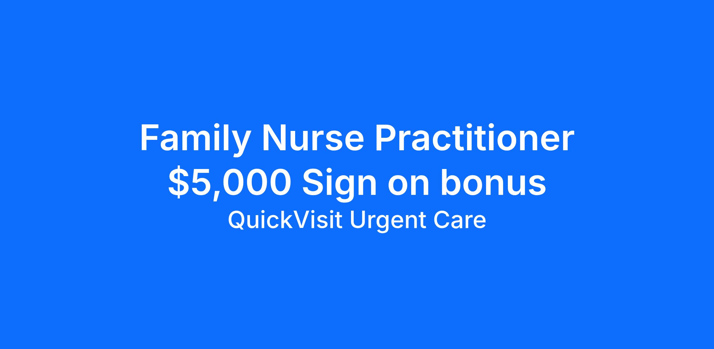 What We’re Looking For: If you're a Nurse Practitioner that goes above and beyond to deliver exceptional patient care, challenge yourself and your coworkers towards growth, thrive in a fast-paced environment, and want to change the lives of your patients and our community then we invite you to become a part of our family at QuickVisit Urgent Care. We can’t wait to connect with you!