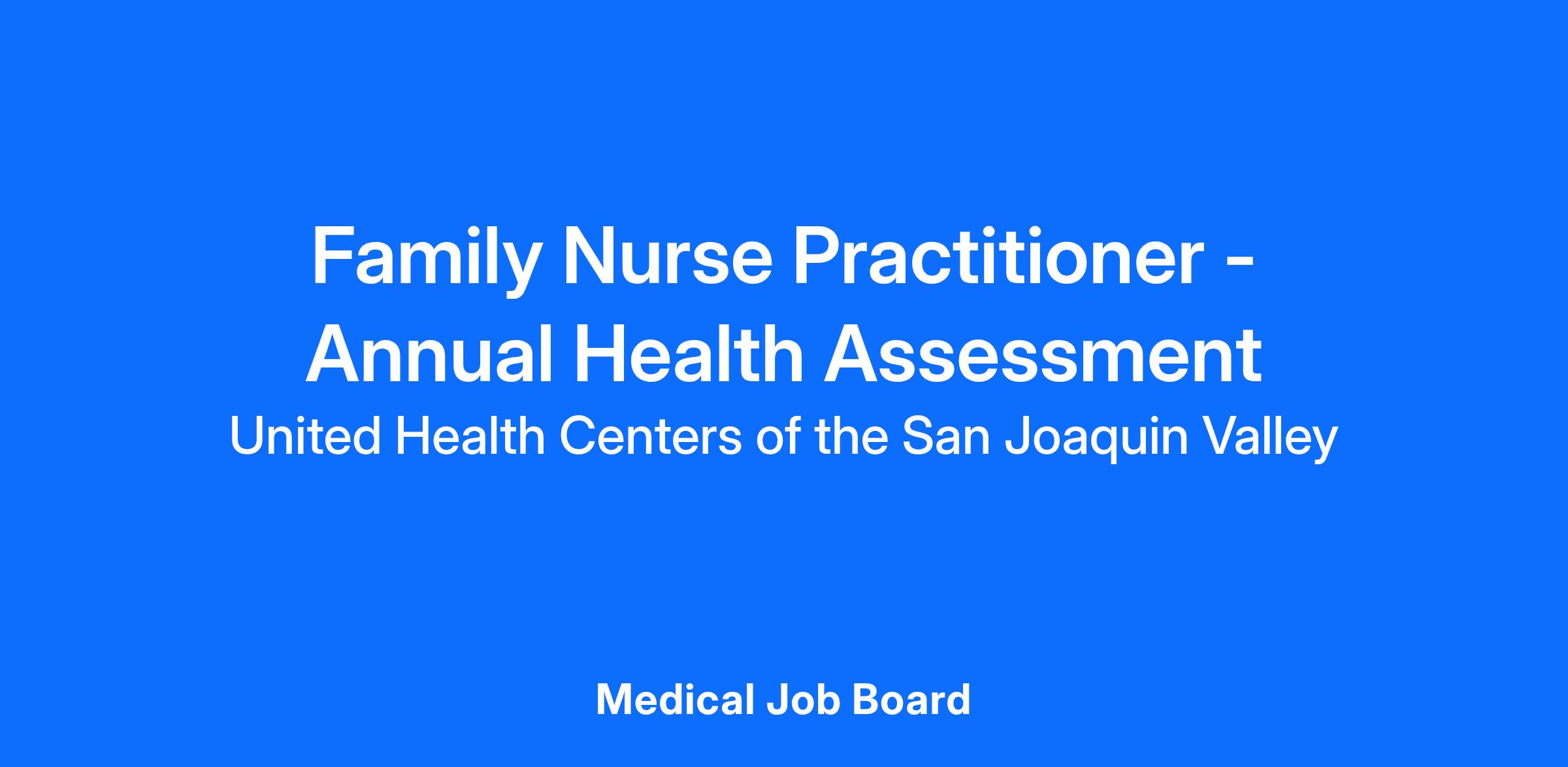 A Family Nurse Practitioner passionate about community health and family medicine to perform Annual Health Assessments.