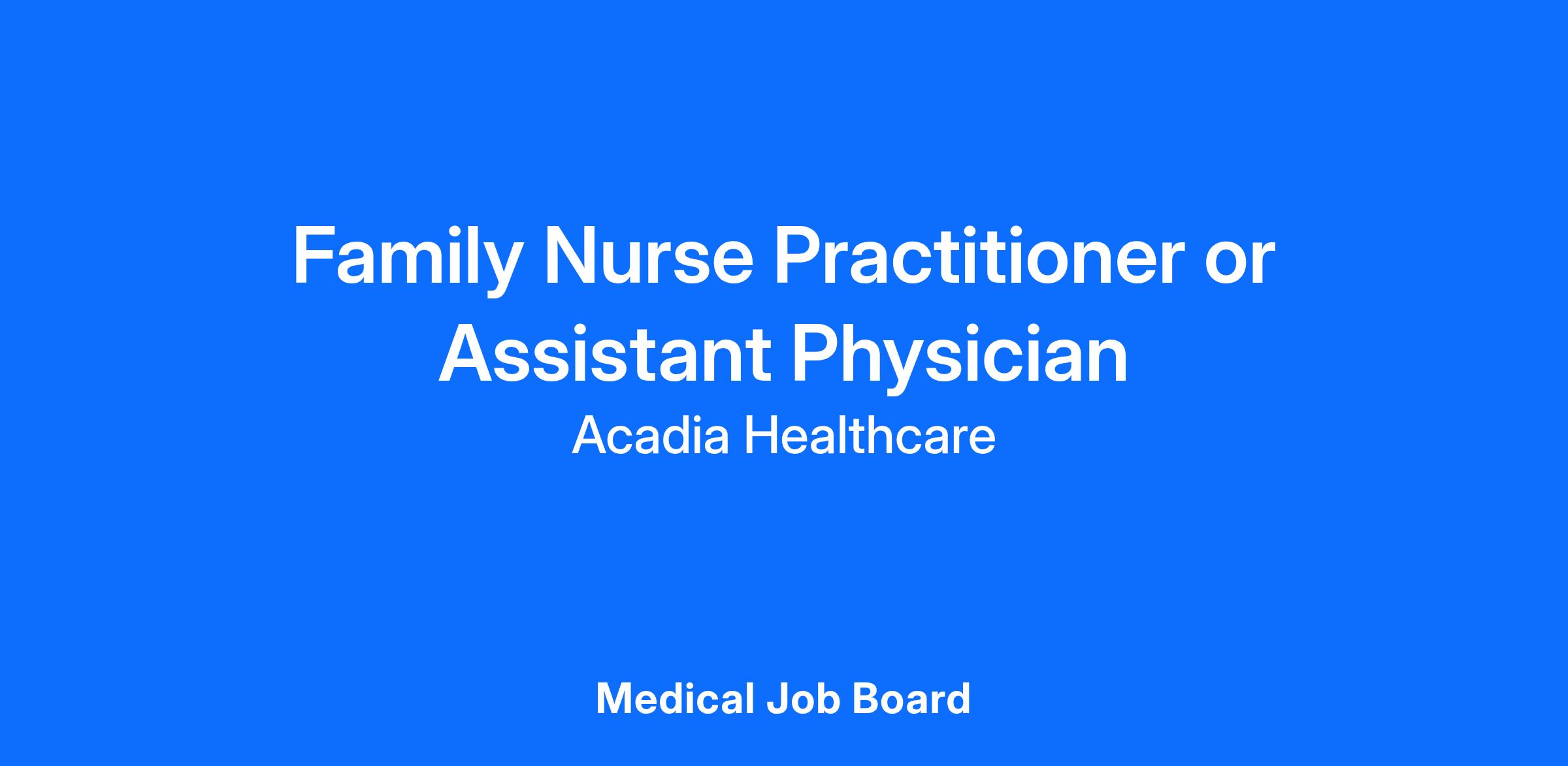 We are seeking a Full Time Family Nurse Practitioner or Assistant Physician (per Missouri board of registration) to join our team to provide medical services to our patients.