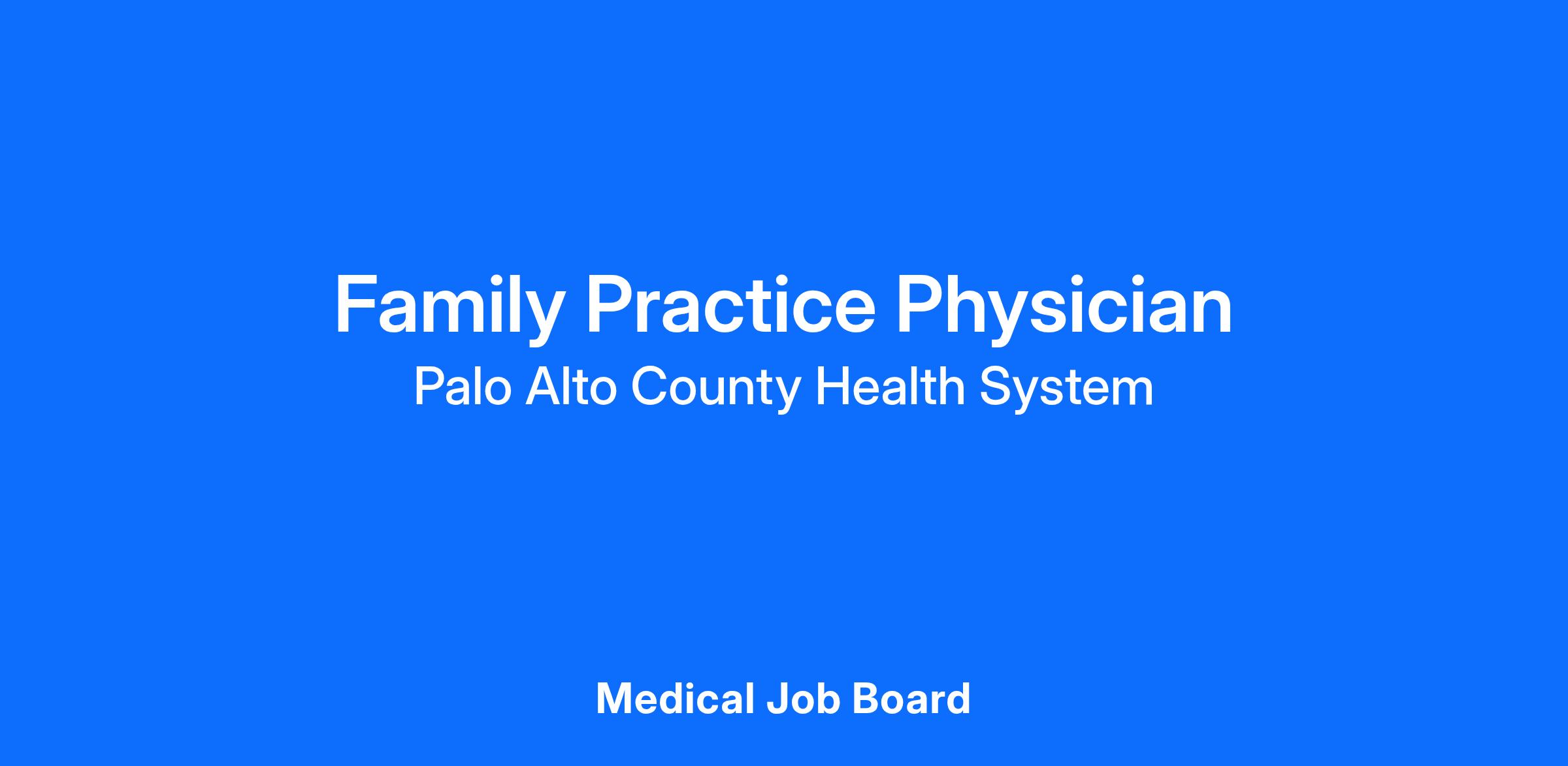 Palo Alto County Health System (PACHS) is seeking a dedicated Family Practice Physician to join our hospital-employed practice. This opportunity involves working with a team of 3 physicians and 6 non-physician providers, delivering exceptional care to our community. Enjoy competitive compensation, a generous benefits package, relocation assistance, incentives, and loan repayment options.