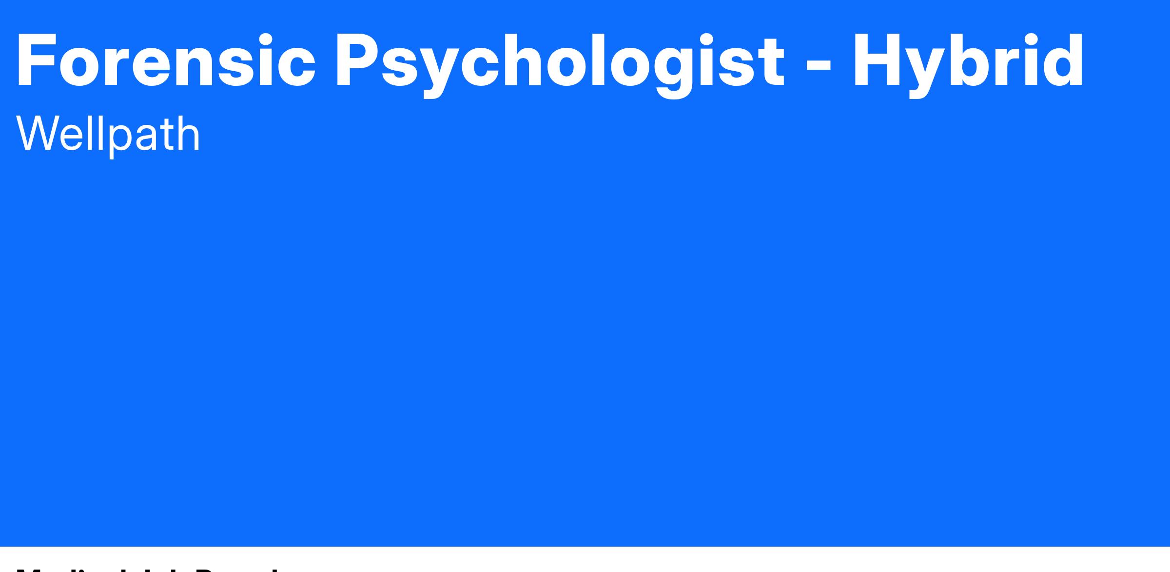 The Forensic Psychologist performs court ordered evaluations, commitment and recommitment evaluations. Evaluates individuals served with suspected mental health difficulties, which may include issues of Competence to Stand Trial (CST) or Criminal Responsibility (CR), aid-in-sentencing, and civil commitment related to mental illness.