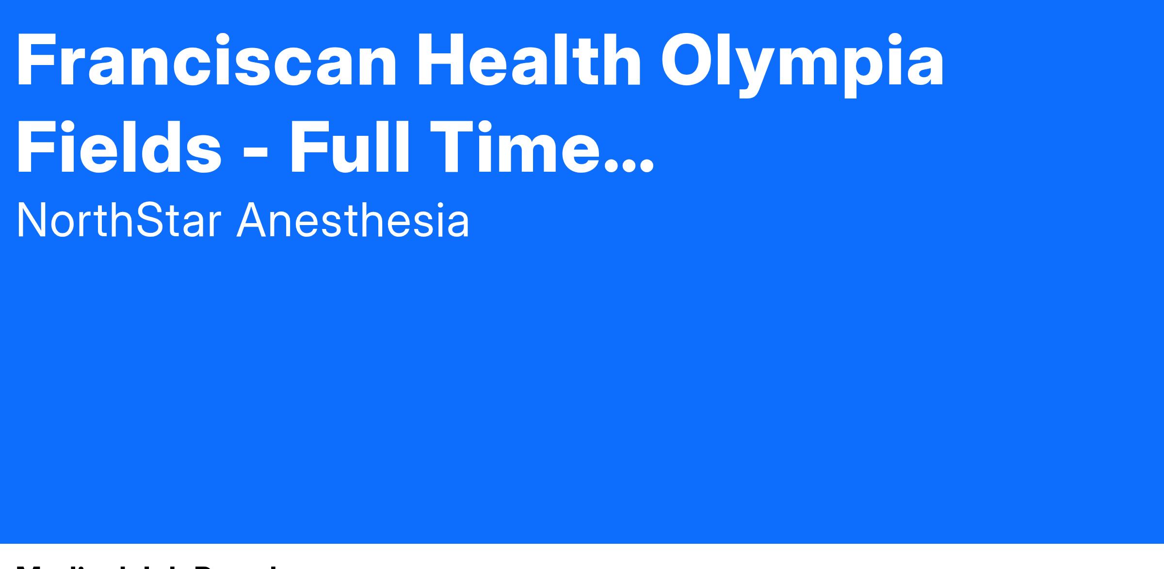 Facility Description: At Franciscan Health Olympia Fields, we are dedicated to providing the best healthcare possible. We are proud to be a recognized leader in Illinois healthcare