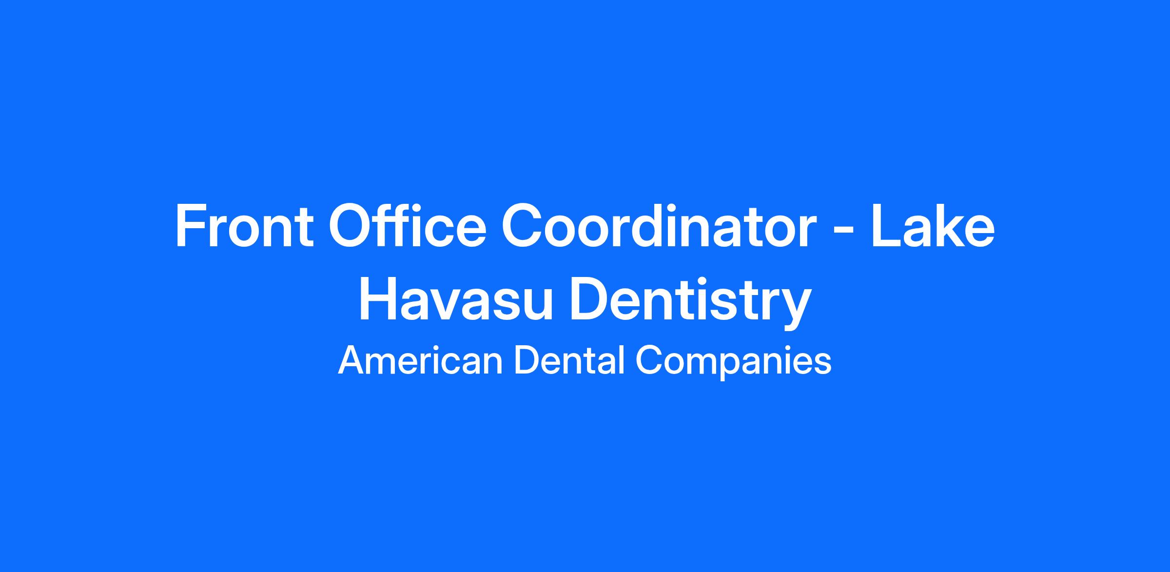 Do you love making people smile-before they even sit in the chair? At Lake Havasu Dentistry, we're looking for a Dental Front Office Coordinator who brings energy, organization, and a big dose of friendliness to our team!