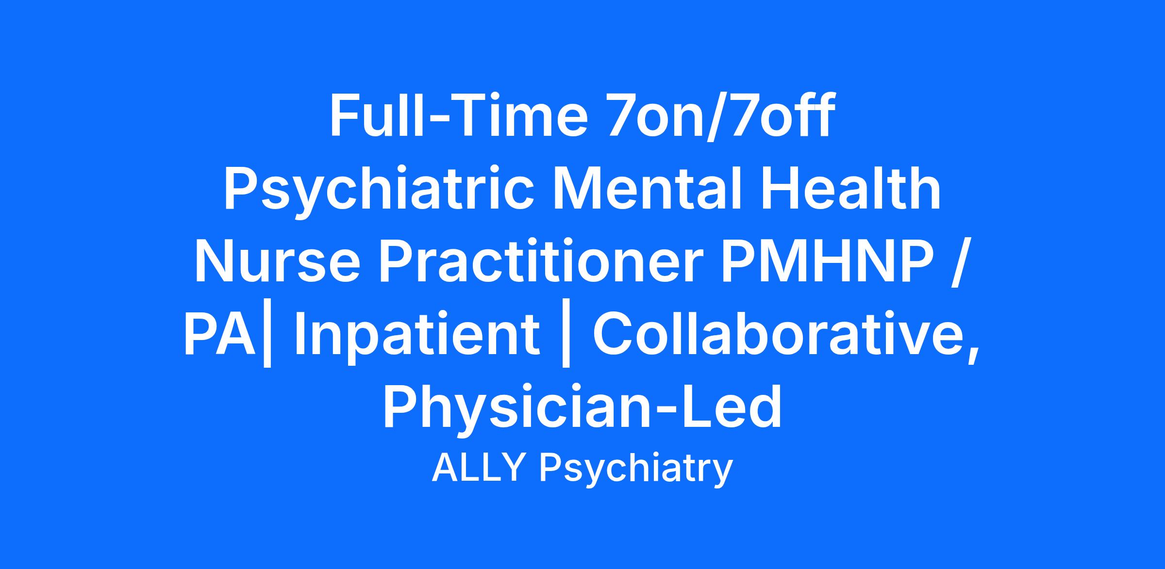 Ally Psychiatry is seeking Full-Time Psychiatric Mental Health Nurse Practitioners (PMHNP) or Psychiatric Physician Assistants to join our inpatient team in Charleston, South Carolina. This is an excellent opportunity for a provider who enjoys acute care psychiatry and values a structured schedule that supports both professional fulfillment and personal time.