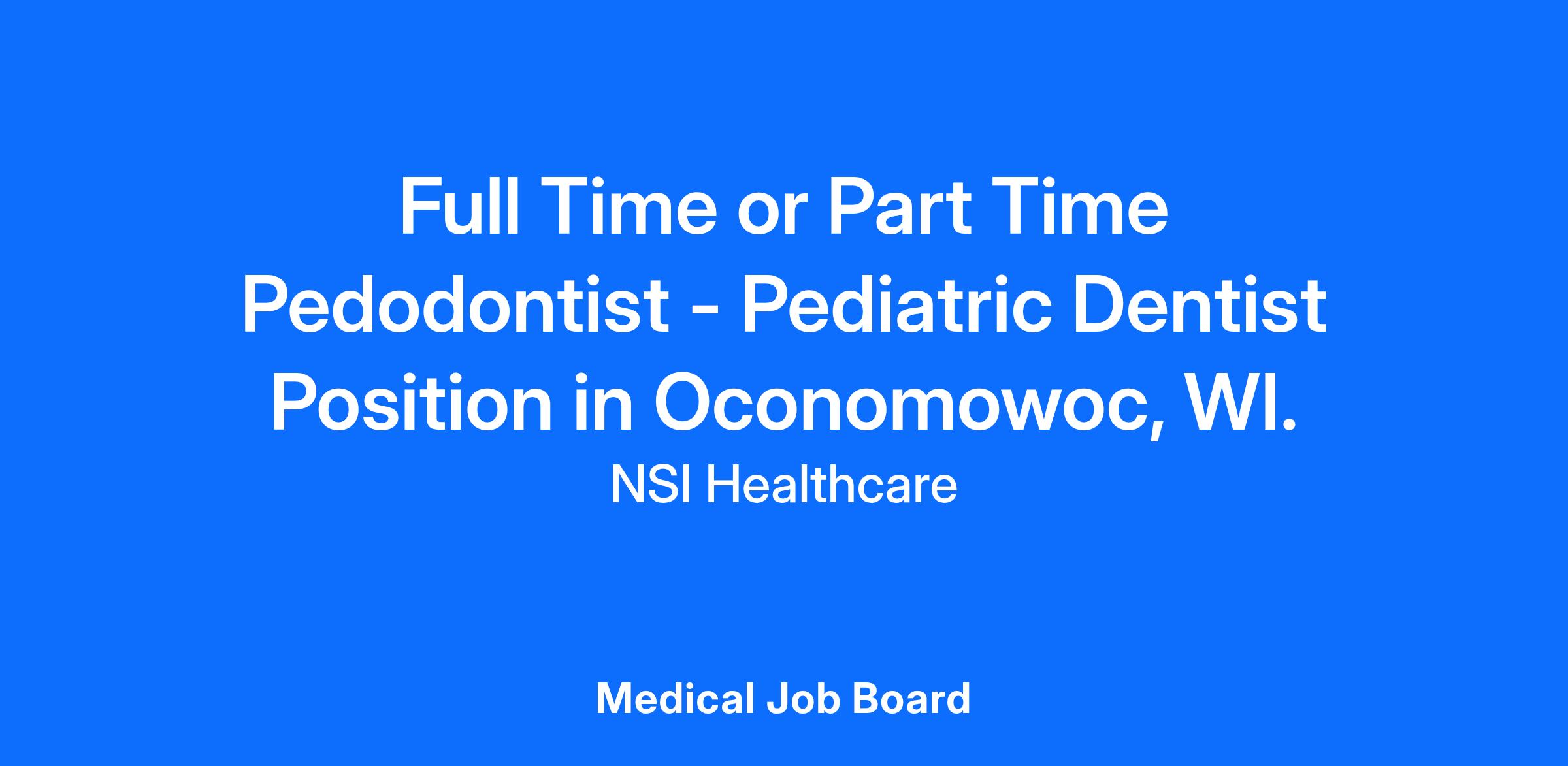 Full Time or Part Time Pedodontist - Pediatric Dentist Position in Oconomowoc, WI.