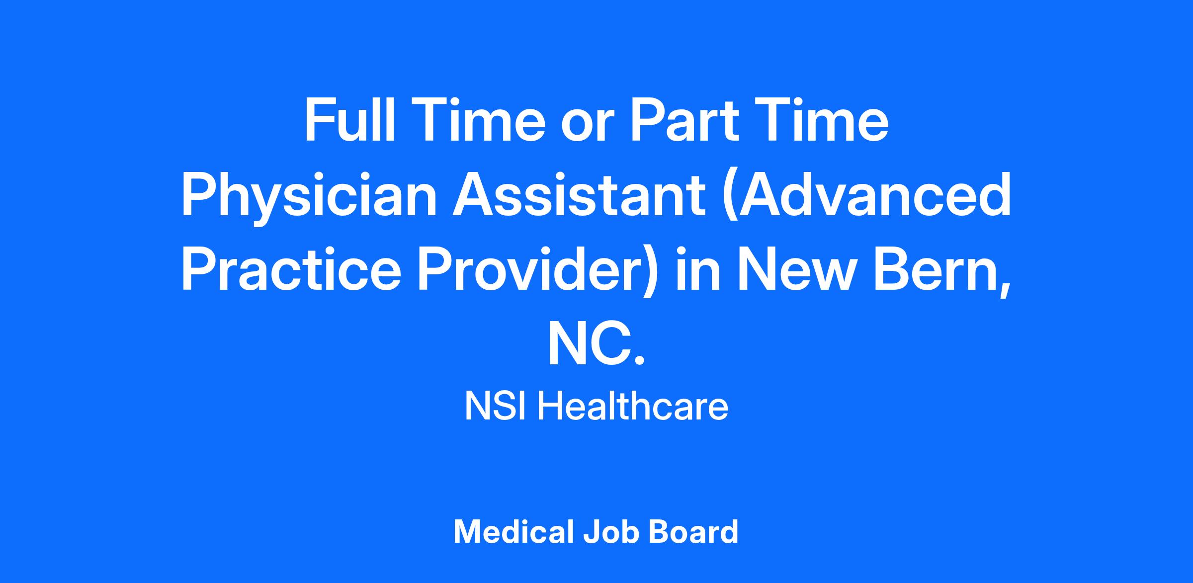 Full Time or Part Time Physician Assistant (Advanced Practice Provider) in New Bern, NC.