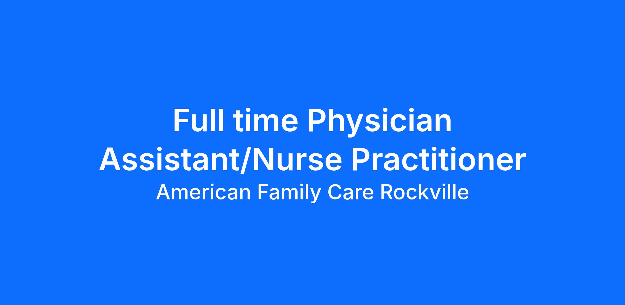 AFC Urgent Care Rockville is seeking a compassionate and dedicated Physician Assistant/Nurse Practitioner to join our team!