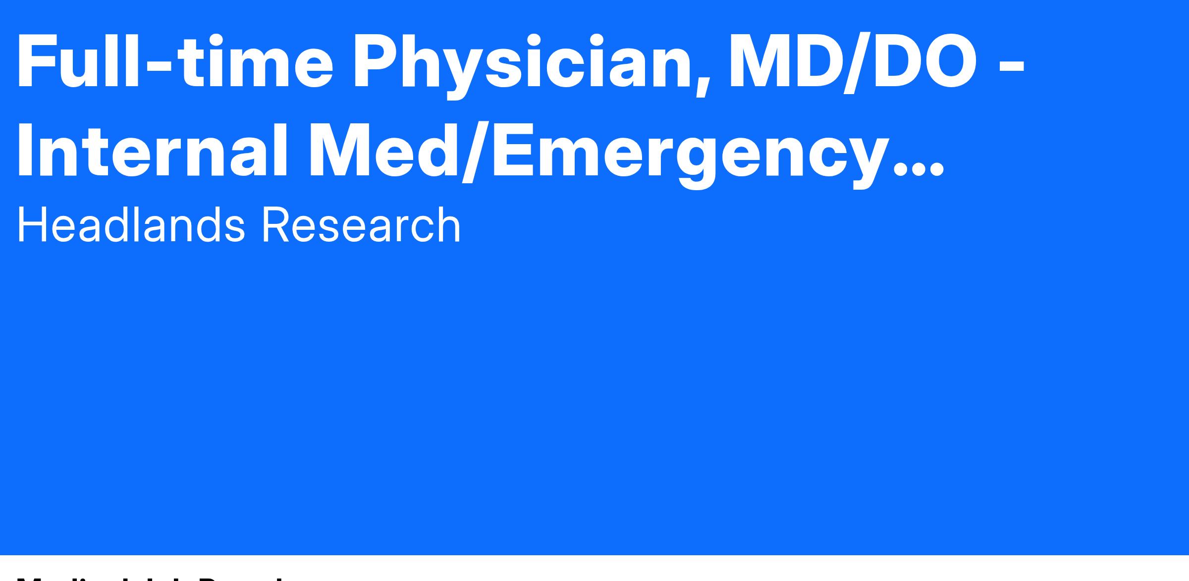 Are you a board-certified or board-eligible physician passionate about advancing medicine? We are seeking a full-time Internal Med, Emergency Med, or Family Med Physician (MD/DO) to join our high-performing clinical research team. This role is ideal for an experienced Principal Investigator (PI) or a physician eager to transition into clinical trials and research-based medicine.
