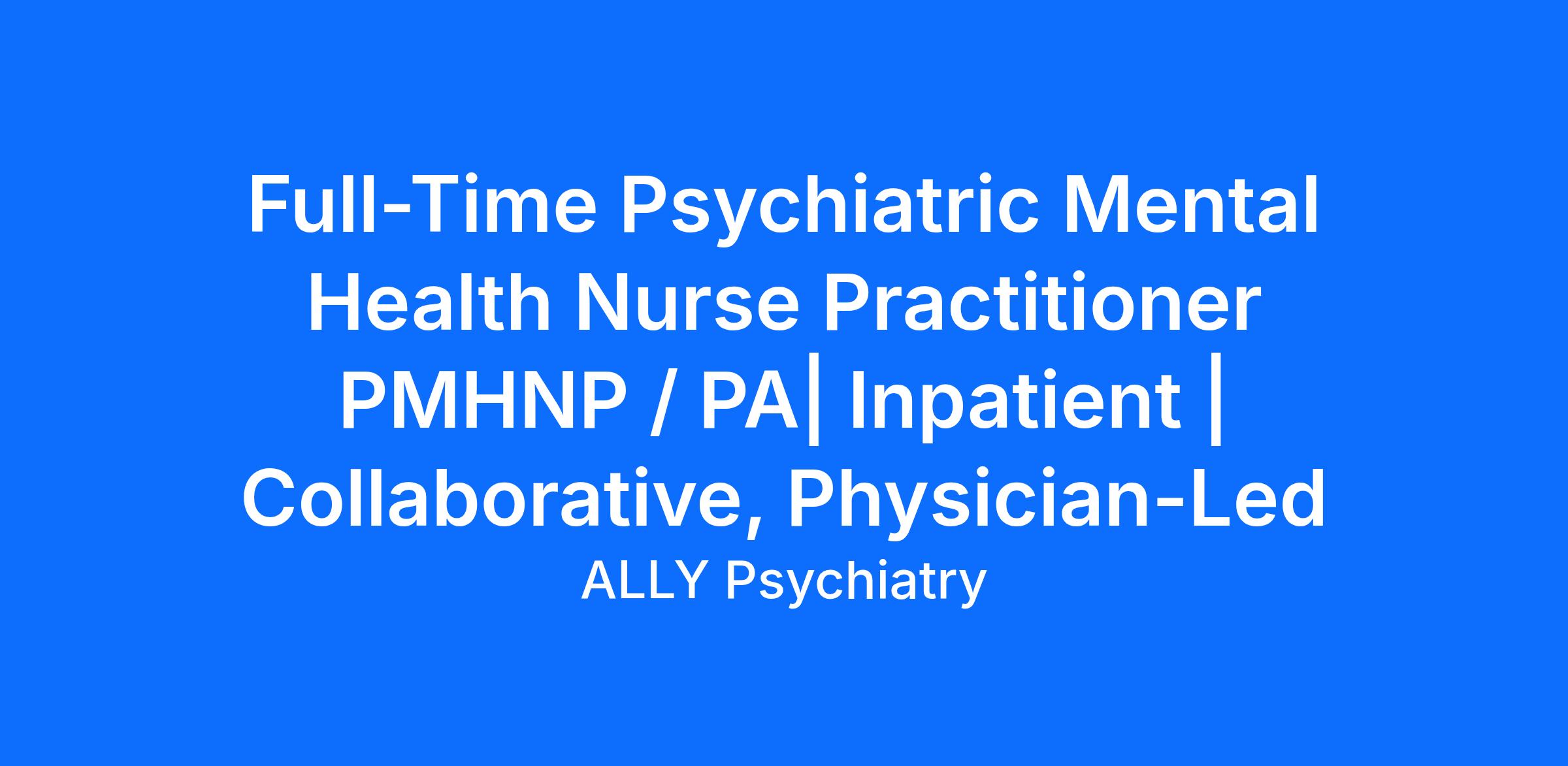 • Board Certified PMHNP or Physician Assistant with psychiatric experience (or strong mental health background).
