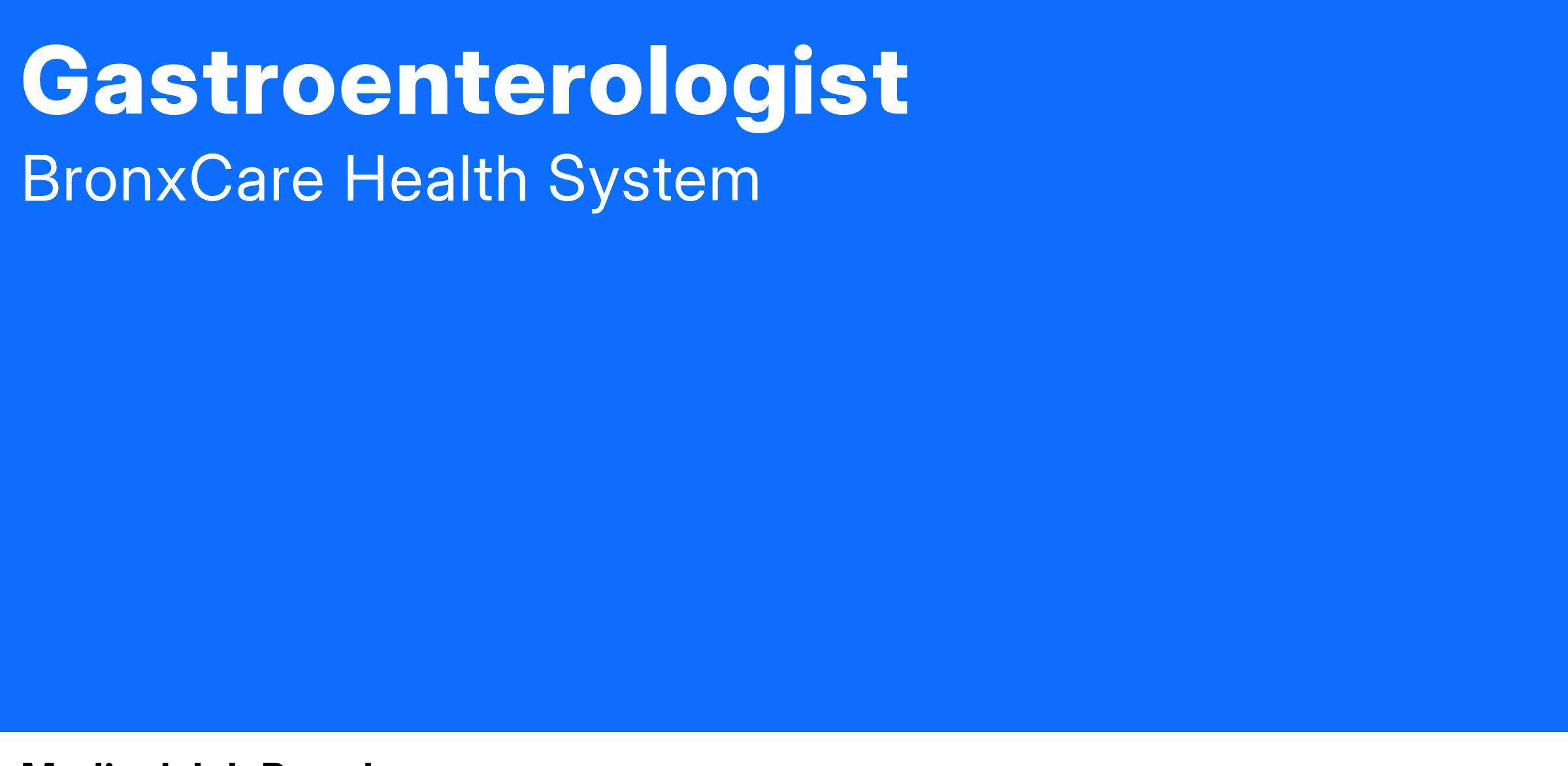 Any person interested in the position should forward resume to: BronxCare Health System, ainfante@bronxcare.org, Attn: Al Infante, Applying for Gastroenterologist.