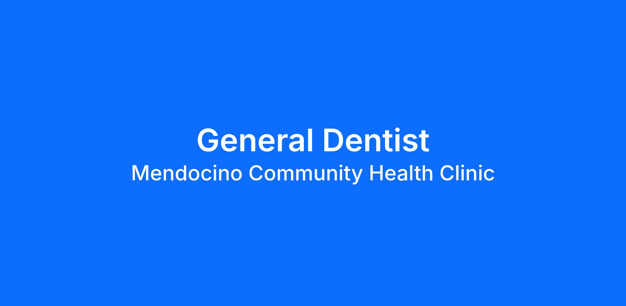 Mendocino Community Health Center, Inc. (MCHC) is currently seeking a General Dentist (DDS/ DMD) to join our care team. MCHC provides comprehensive services for the communities of Mendocino and Lake Counties In addition to Dental Care, we provide primary care, behavioral health, women's services, and specialty care services. There is strong team support and a multidisciplinary care team approach to care. The mission of MCHC Health Centers is to provide compassionate, high-quality healthcare for everyone in our communities. We ensure that there are no closed doors for those seeking dental or primary health care at MCHC in Lake and Mendocino Counties. Our Dental team consists of Dentists, RDH, RDA-EFT2s, RDAs, and DAs. Dental is central to the care we provide our patients. This is a full-time position, Monday-Friday, 8:30-5:30. This dentist will see a wide range of ages, including pediatric patients. If you have not yet traveled to this part of California, it is the peacefulness of Redwood Tree Groves and the short drive to the awe-inspiring Pacific Ocean that will draw you! Compensation and Benefits: