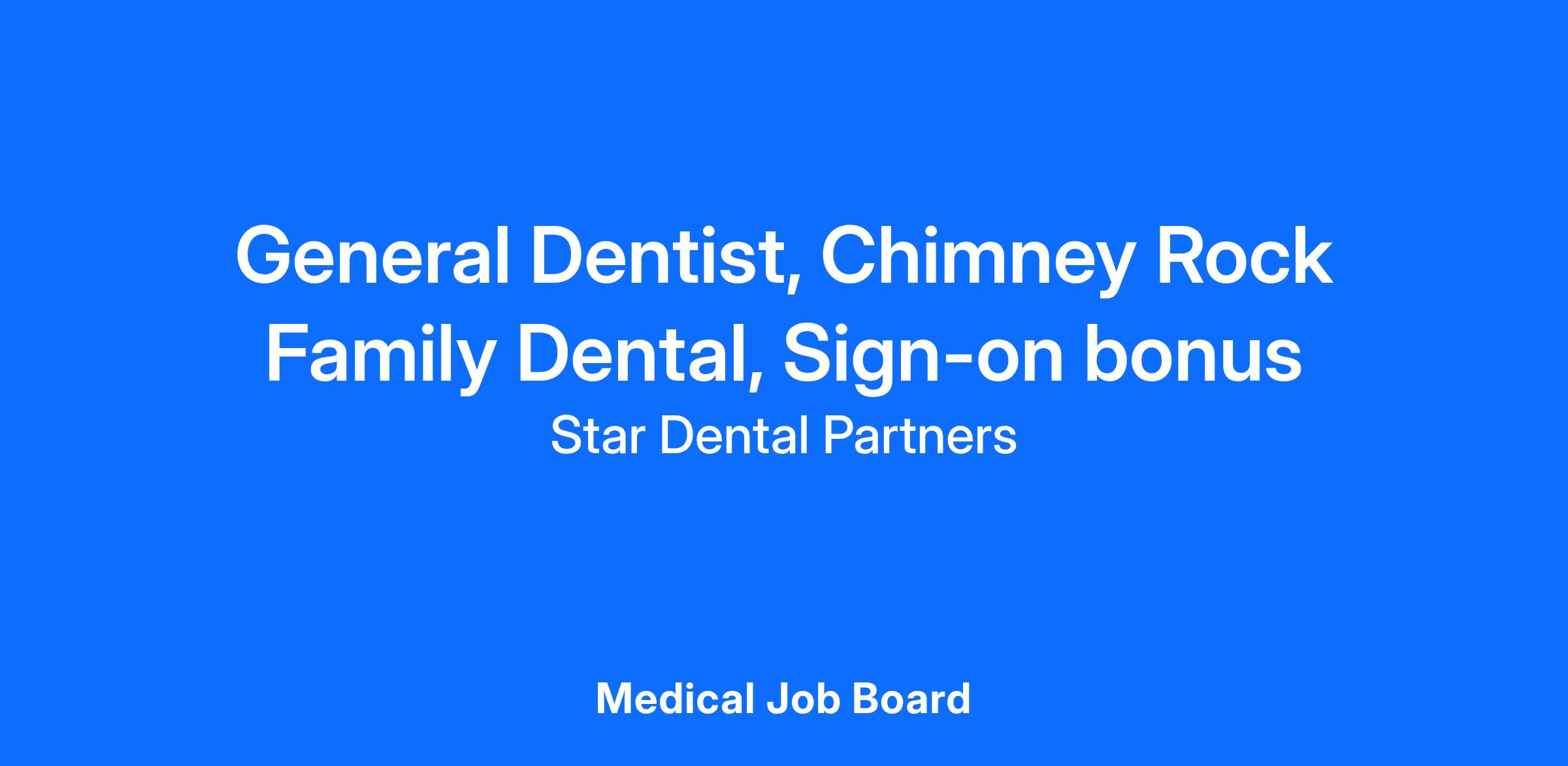 Join Chimney Rock Family Dental as a full-time or part time General Dentist (DDS/DMD), and discover a rewarding career in the dynamic field of dentistry.