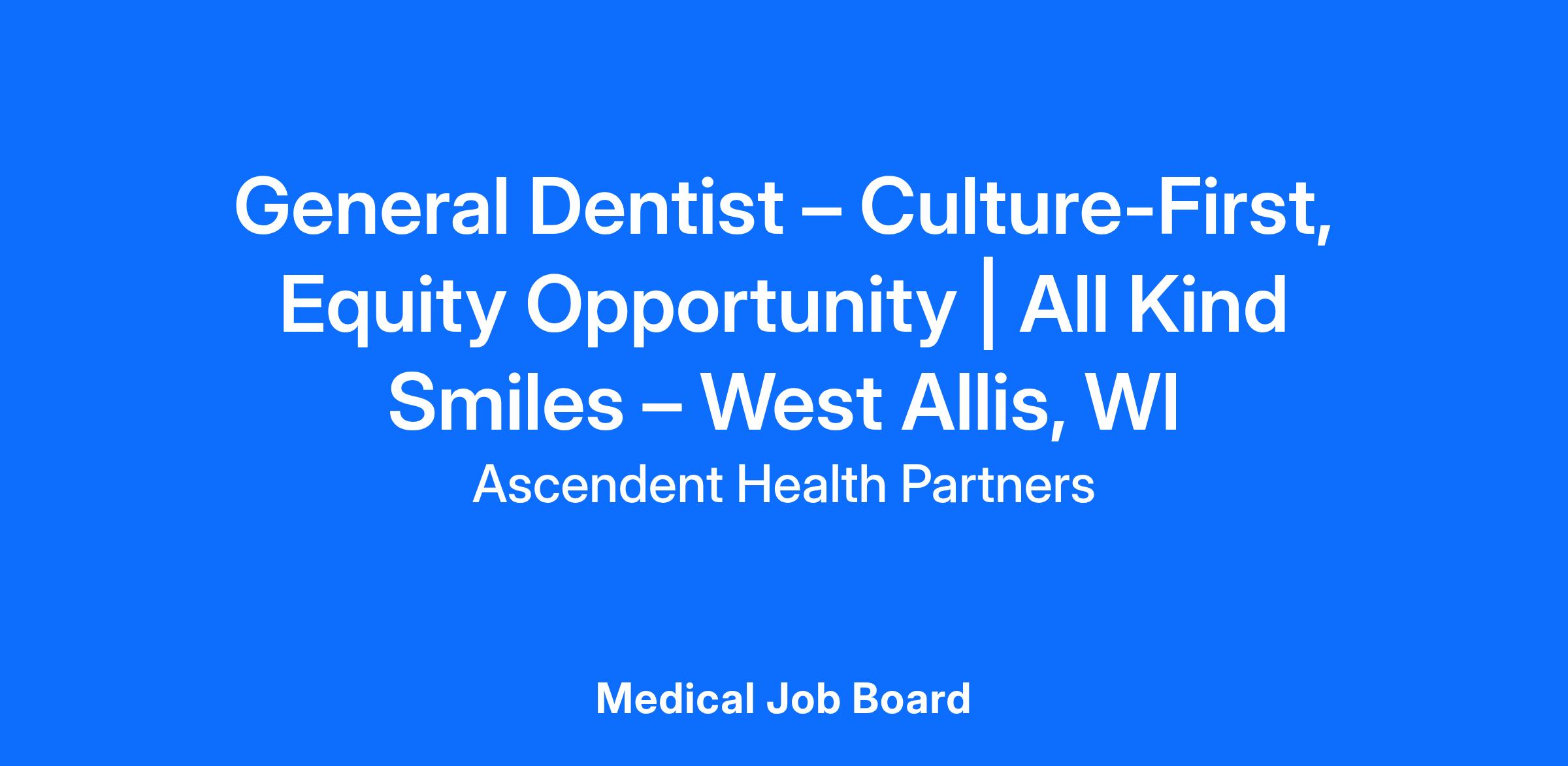 All Kind Smiles is looking for a full-time General Dentist to join our values-driven practice in West Allis, WI. We believe in long-term relationships with both our patients and our team, and we back that belief with a clear path to profit sharing or equity ownership—without requiring you to buy in.