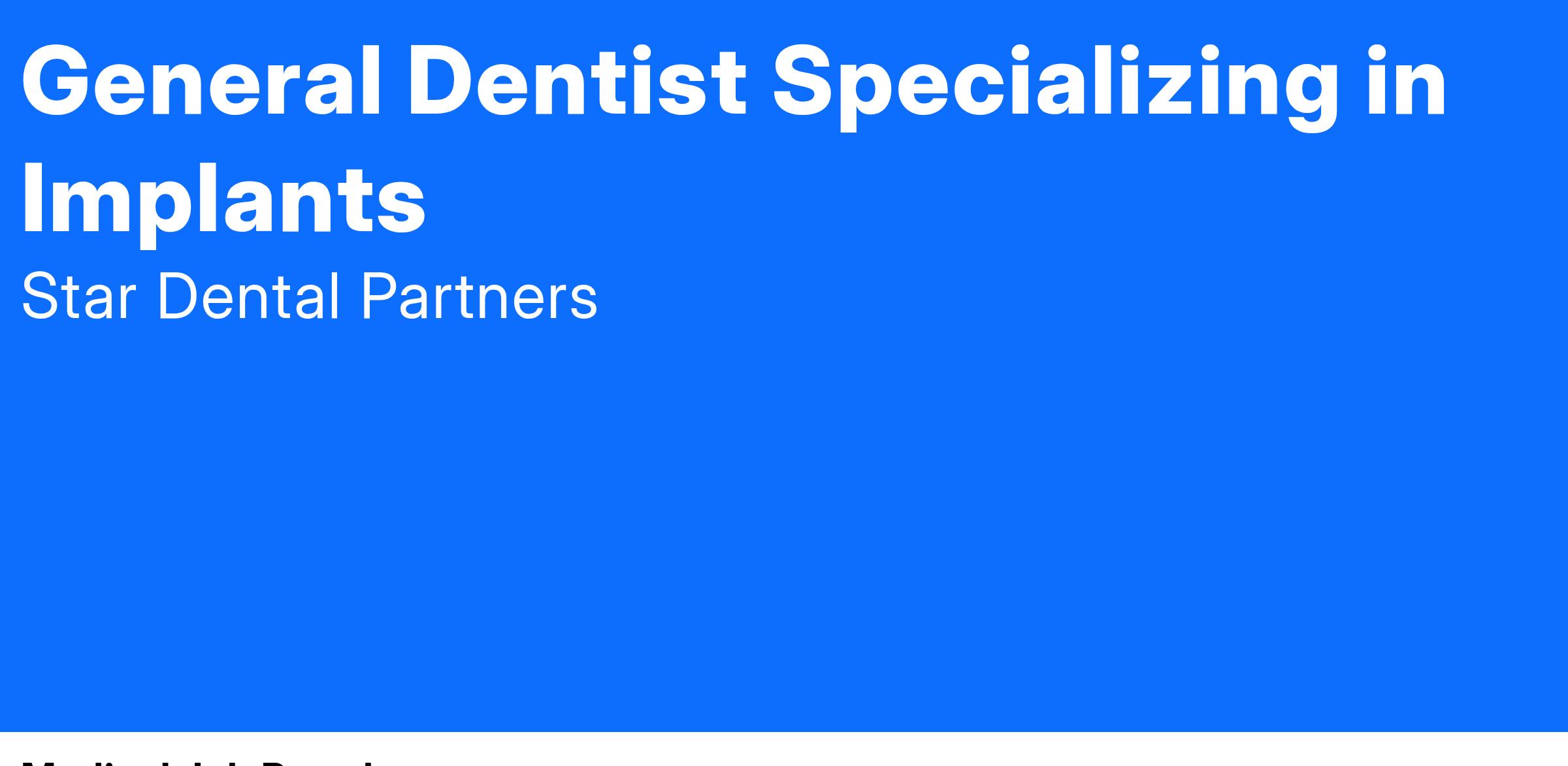 Job Title: Full-Time Dentist specializing in General Dentistry and Implants