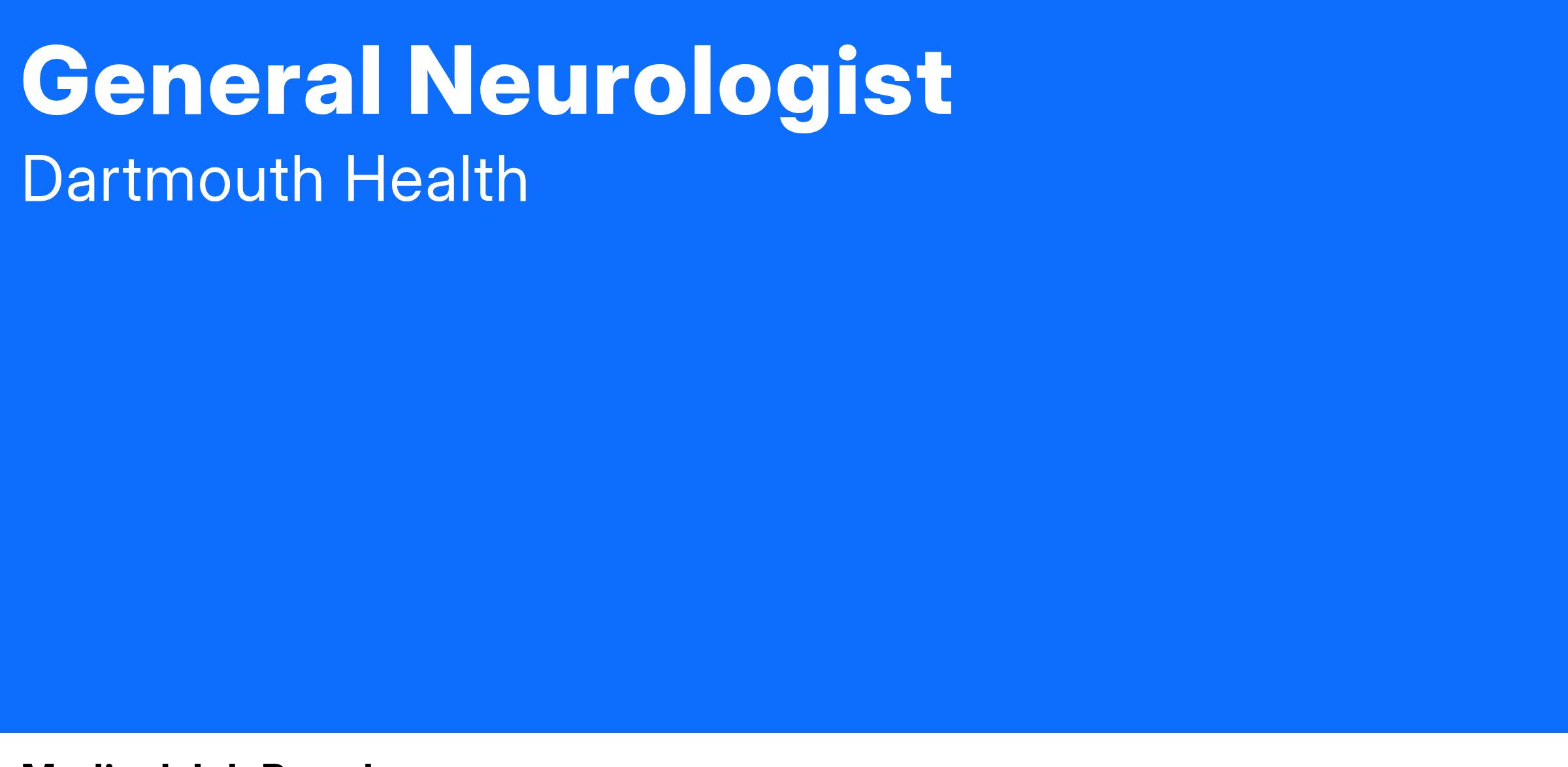 Dartmouth Health Cheshire Medical Center is seeking a board-certified/board-eligible General Neurologist to join our growing team in Keene, NH. This position offers an exciting opportunity to provide comprehensive neurological care in a collaborative and well-established practice. The successful candidate will diagnose and manage a broad spectrum of neurological conditions in an outpatient and/or inpatient setting, with opportunities to develop subspecialty interests if desired.