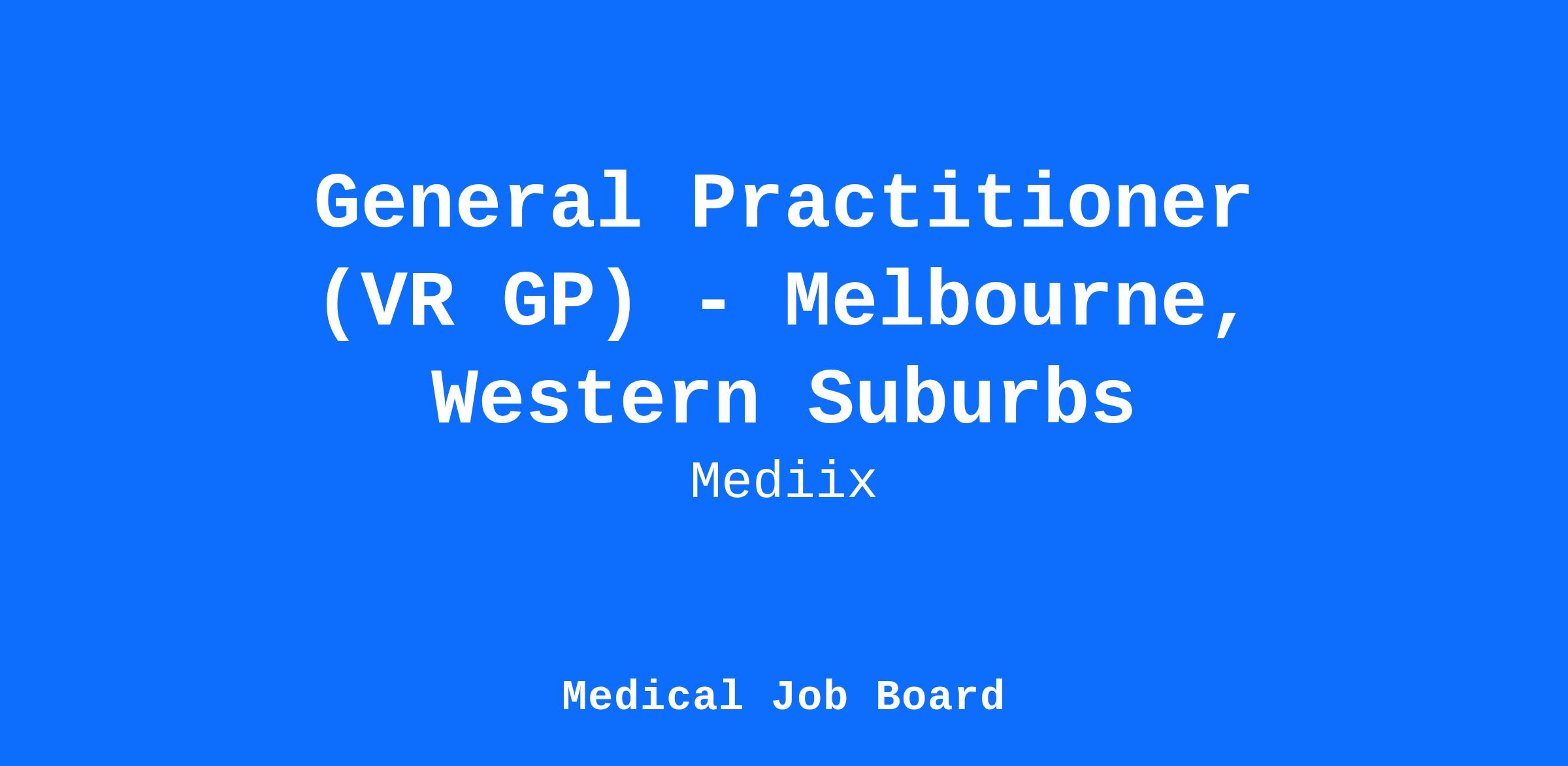- VR GP preferred, but non-VR GP with PEP (Practice Experience Program) qualifications will also be considered.