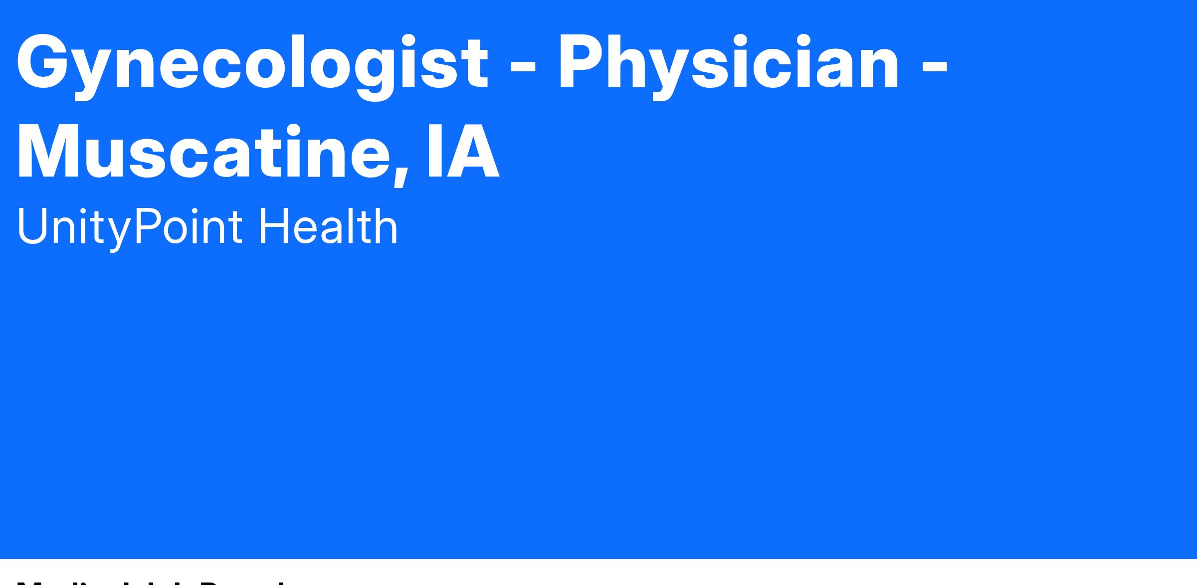 UnityPoint Clinic is actively recruiting for a Gynecologist Physician to join our team in Muscatine.