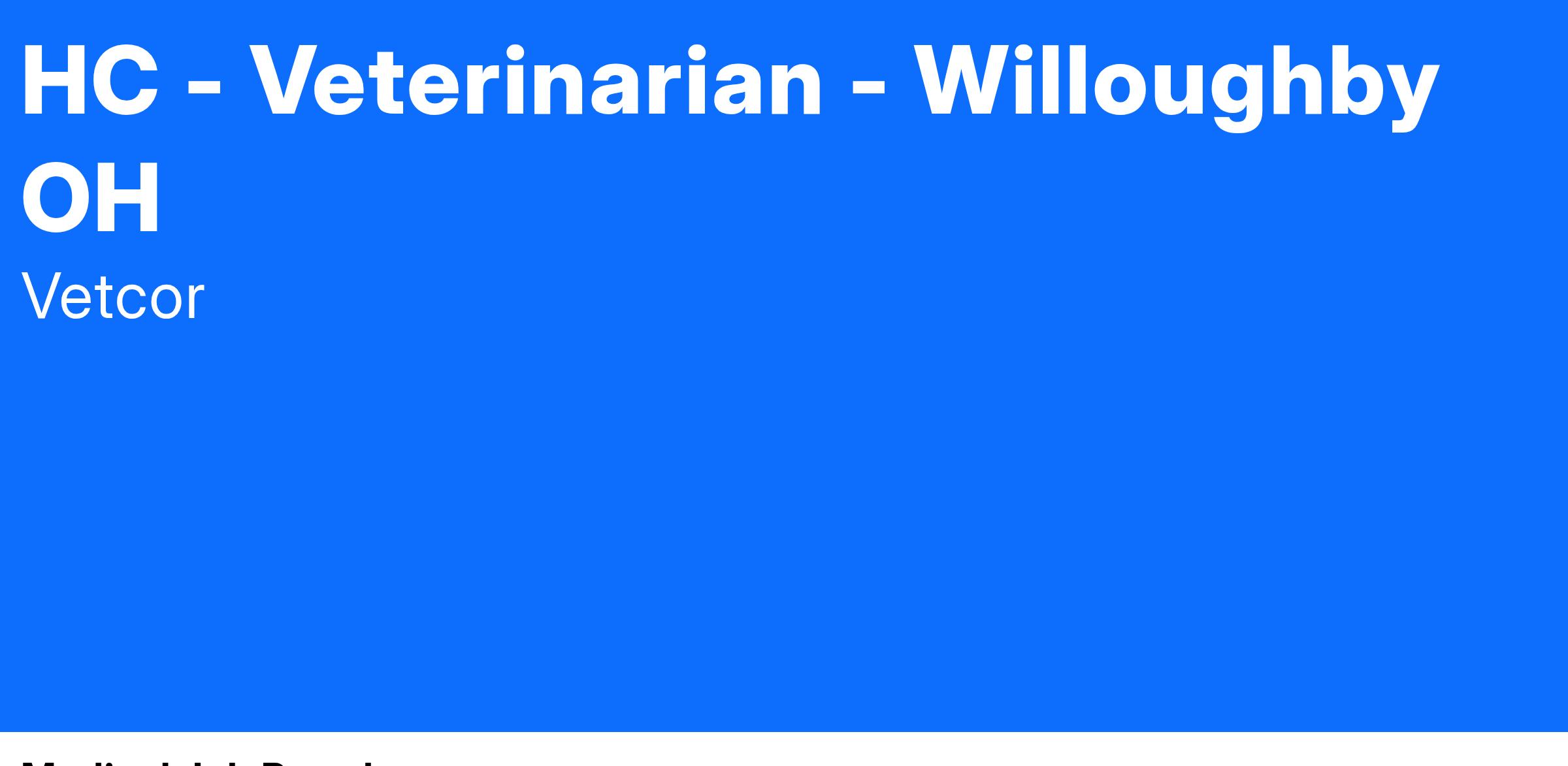 Find out more about our clinic, and meet our staff at www.pethospitalofwilloughby.com; and get to know us at www.facebook.com/pethospitalofwillougby. Please send resumes and any inquiries to our hospital manager, Kellie at kwilkinson@vetcor.com. Must have or have applied for valid Ohio Veterinary Medical License.