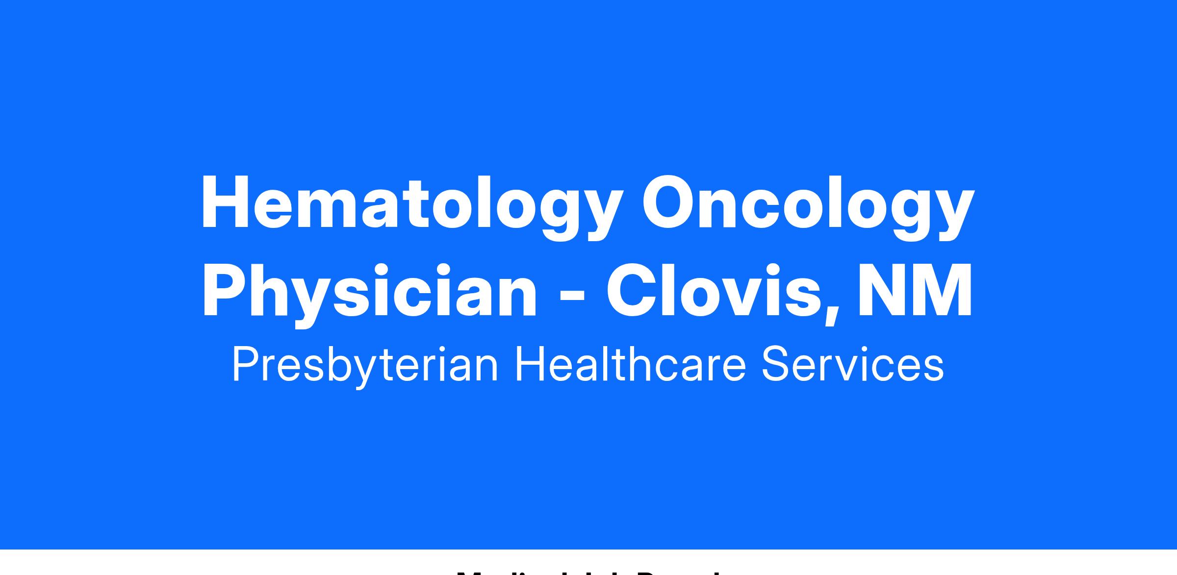 The Cancer Care program at Presbyterian is seeking a Hematology/Oncology trained physician to join our busy program in Clovis, New Mexico. We’re all about well-being, starting with yours. Our practice fosters a collegial and collaborative atmosphere where teamwork and mutual support are paramount. We believe in creating a positive work environment that encourages professional growth, open communication, and a shared commitment to providing exceptional patient care. Join a team where your expertise is valued, and you can thrive both personally and professionally. We offer a nationally competitive salary with relocation allowance available, CME allowance and fully paid malpractice insurance.