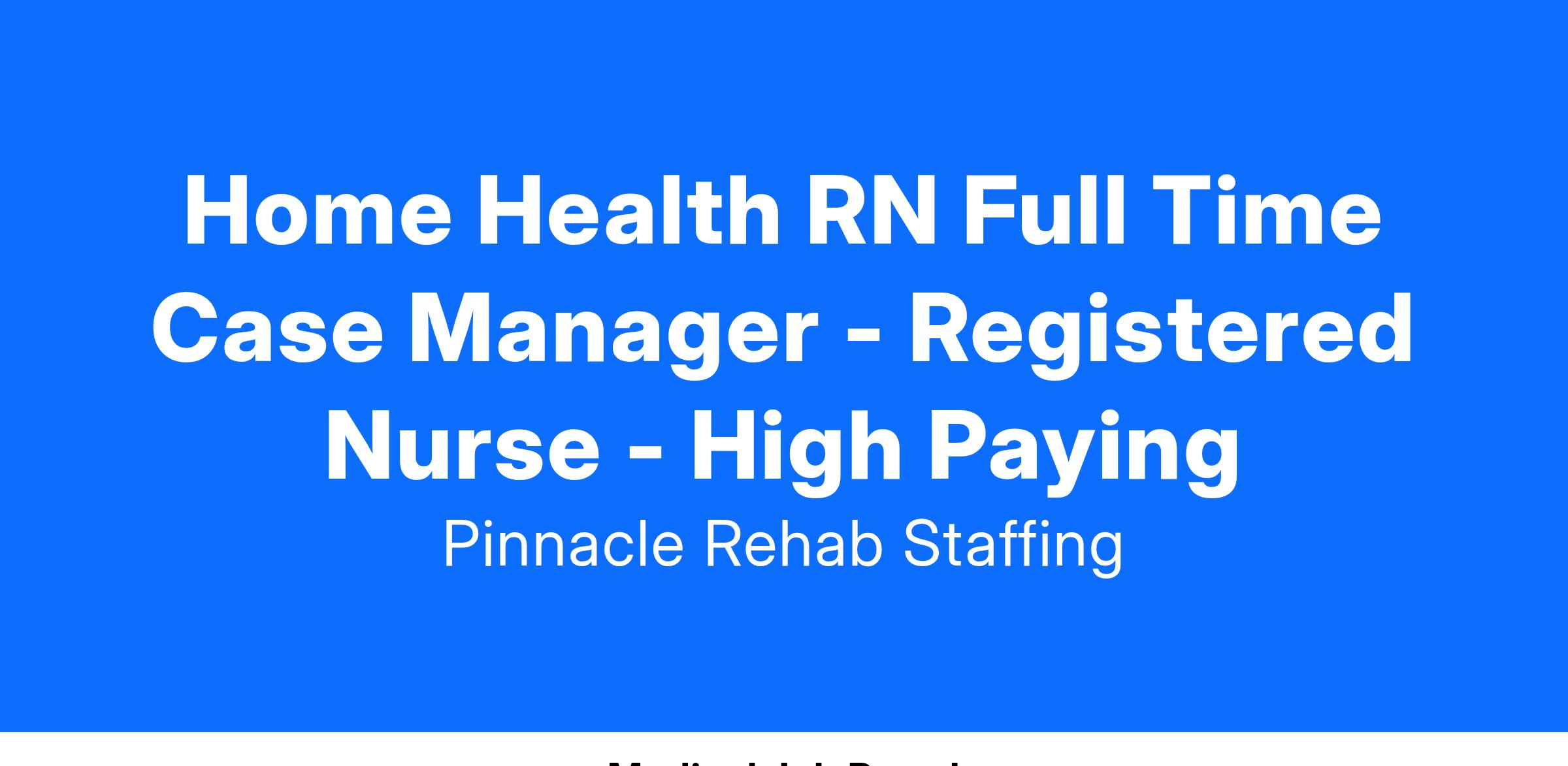 Other Keywords: Visiting Nurse Association, Visiting Nurse Services, VNS, VNA, Home Health Case Manager, Case Manager, Registered Nurse Case Manager, RN Case Manager, RN CM, RNCM, CM, Home Health, Homecare, Home Care, Home Healthcare, Home Health Care, Visit Nurse, Visiting Nurse, Nurse, RN, Registered Nurse, Home Health RN, Homecare RN, Home Healthcare RN, Home Health Care RN, Home Care RN, Admissions RN, Admissions Registered Nurse, Hospice, Hospice Services, End of Life Care, End-of-Life, Terminal Care, Terminally Ill, Palliative Care, Skilled Nursing Facility, SNF, Healthcare Center, Health and Rehab Center, Rehabilitation Center, Health Center, Acute, Subacute, Sub-acute, Sub Acute, Subacute Nurse, Sub acute care, subacute care, sub-acute care, Skilled Care, Skilled Visits, SNF, Short Term, Long Term, In patient, Inpatient, Emergency Room, Emergency Department, ER, ED, Hospital, Medical Center, float nurse, pool nurse, float / pool nurse, SICU, ICU, MICU, DOU, Intensive Care Unit, Medical Intensive Care Unit, Definitive Observation Unit, Surgical Intensive Care Unit, Critical Care Unit, CCU, Medical Acute Care Unit, Correctional Facility, Prison, Medical Surgical, Medical-Surgical, Medical/Surgical, Med Surg, Med-Surg, Med/Surg, Rehabilitation Hospital, full-time, full time