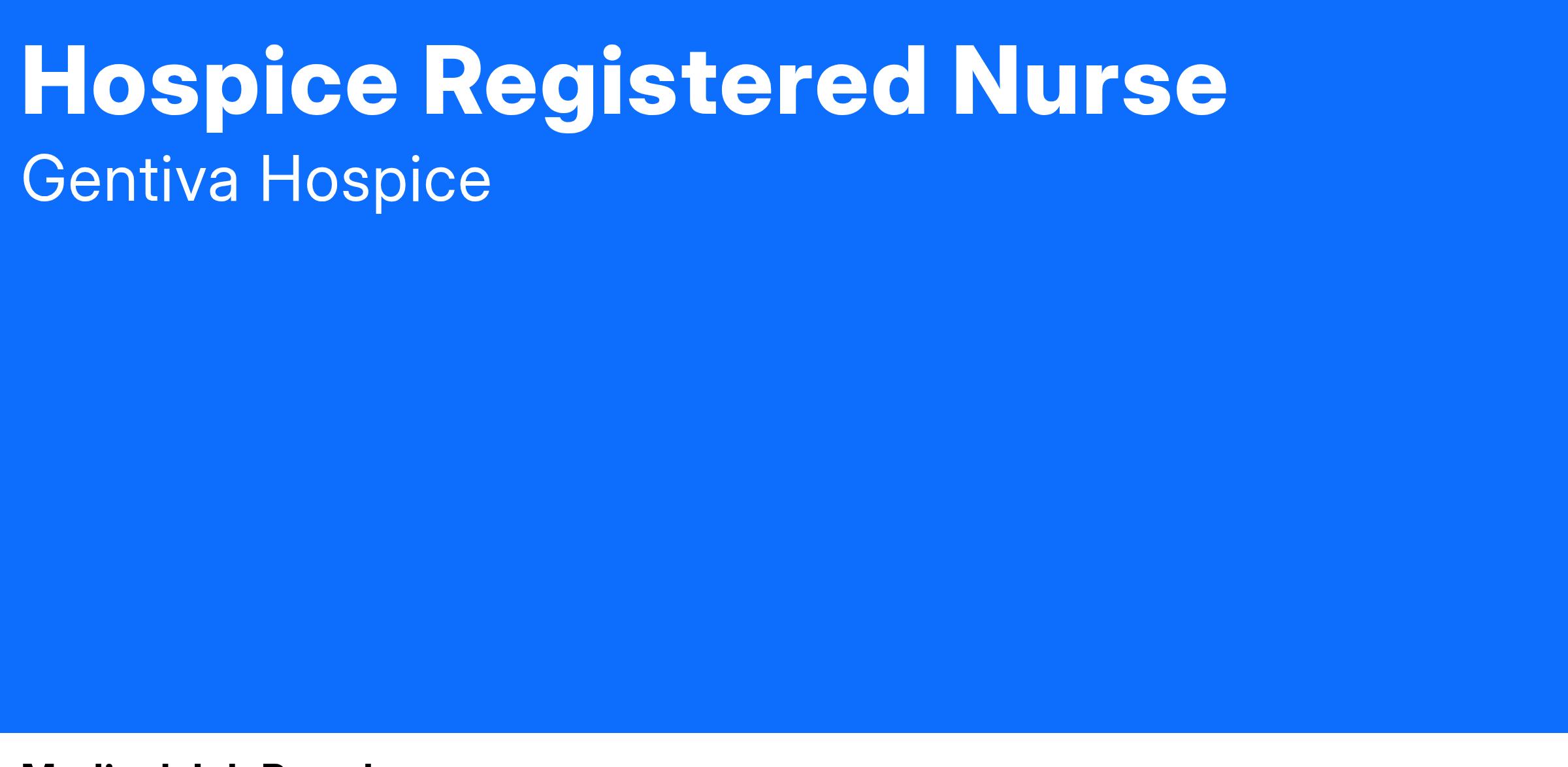 Gentiva Hospice is a member of the Gentiva family – an industry leader in hospice, palliative, home health, and personal home care. Our place is by the side of those who need us, offering physical, spiritual and emotional support to patients and their families so they may make the most of every moment. We believe that better care for caregivers and clinicians means better care for everyone, so we offer ongoing professional training, lower nurse-to-patient ratios, and comprehensive benefits for eligible employees. Here, you'll join gifted colleagues who make a lasting difference in people's lives every day.