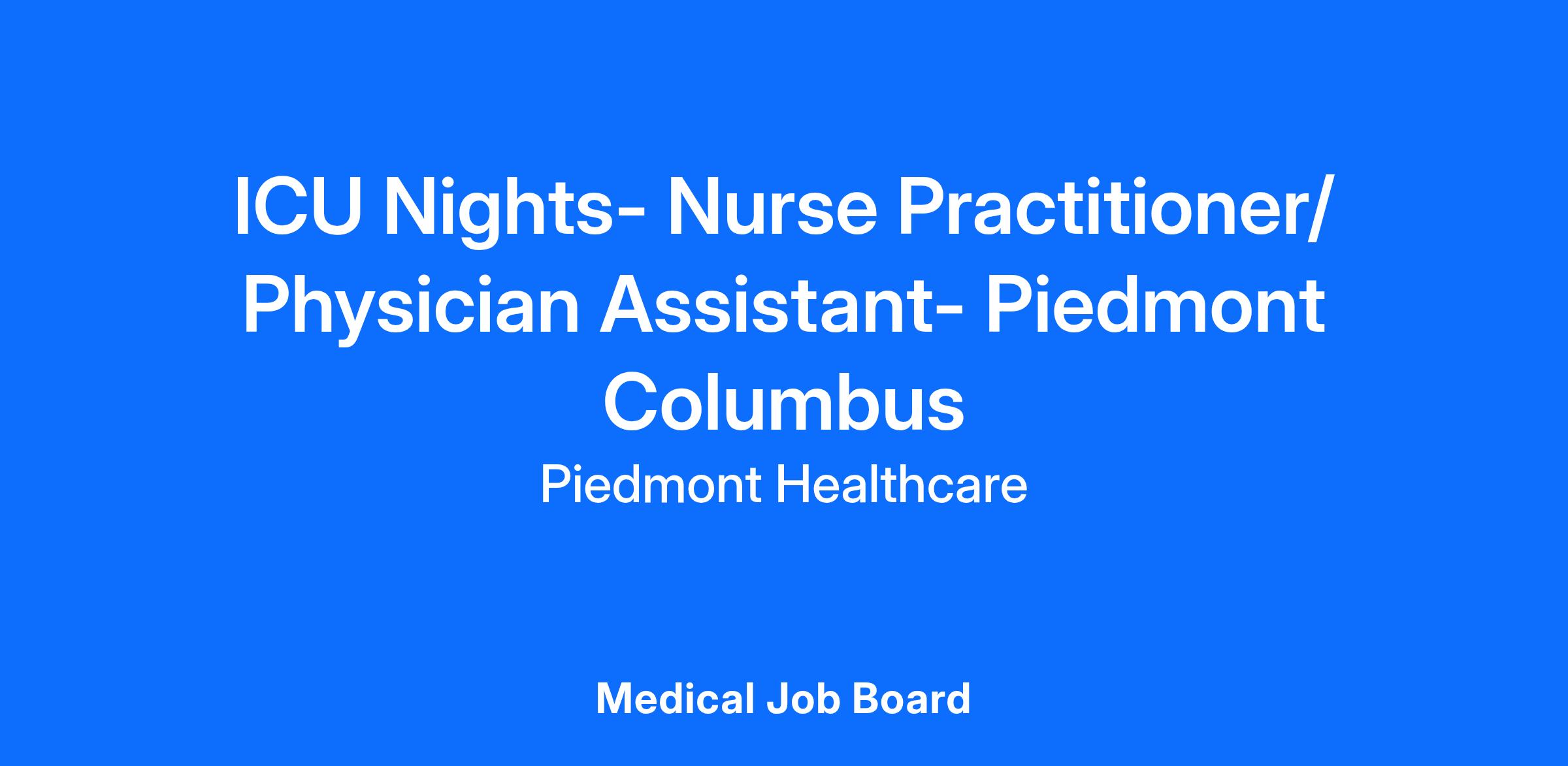 Piedmont Healthcare is recruiting for an Advanced Practice Provider to join the Critical Care team. In this position, your primary responsibility is managing a caseload of critically ill patients in an intensive care setting under the direct supervision of the ICU supervising physician.