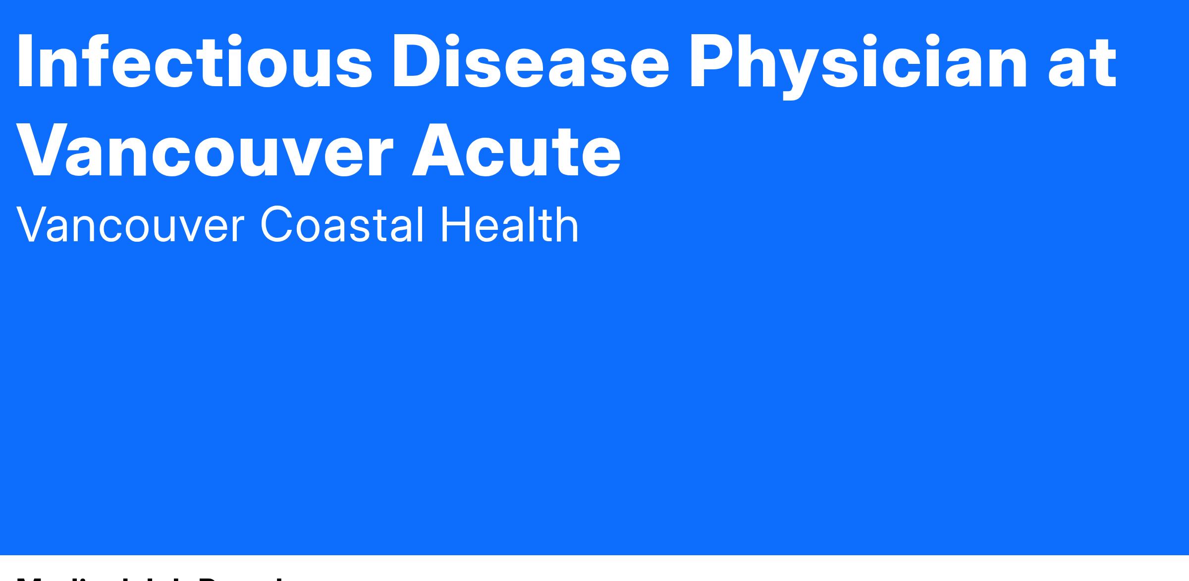 Come work as an Infectious Disease Physician for Vancouver General Hospital with Vancouver Coastal Health (VCH)!
