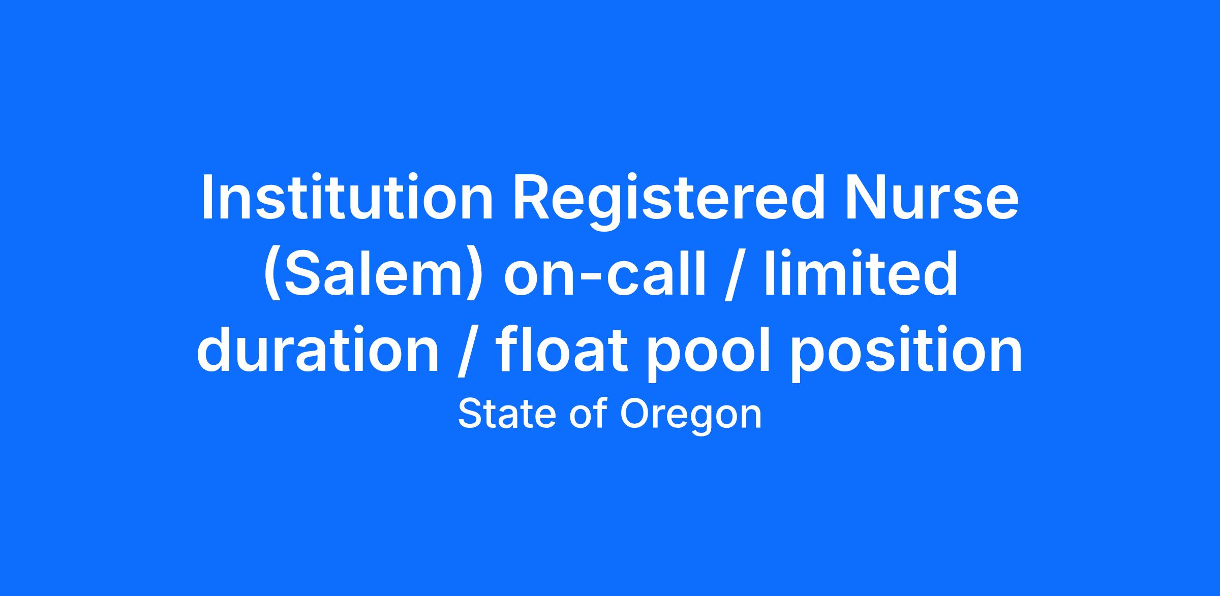 Institution Registered Nurse (Salem) on-call / limited duration / float pool positionJob Description: