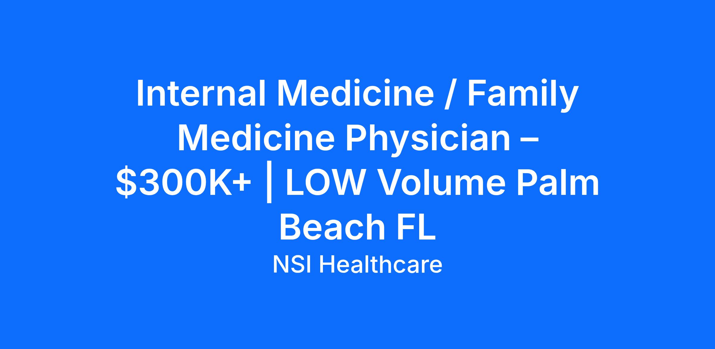 Internal Medicine / Family Medicine Physician - $300K+ | LOW Volume Palm Beach FL