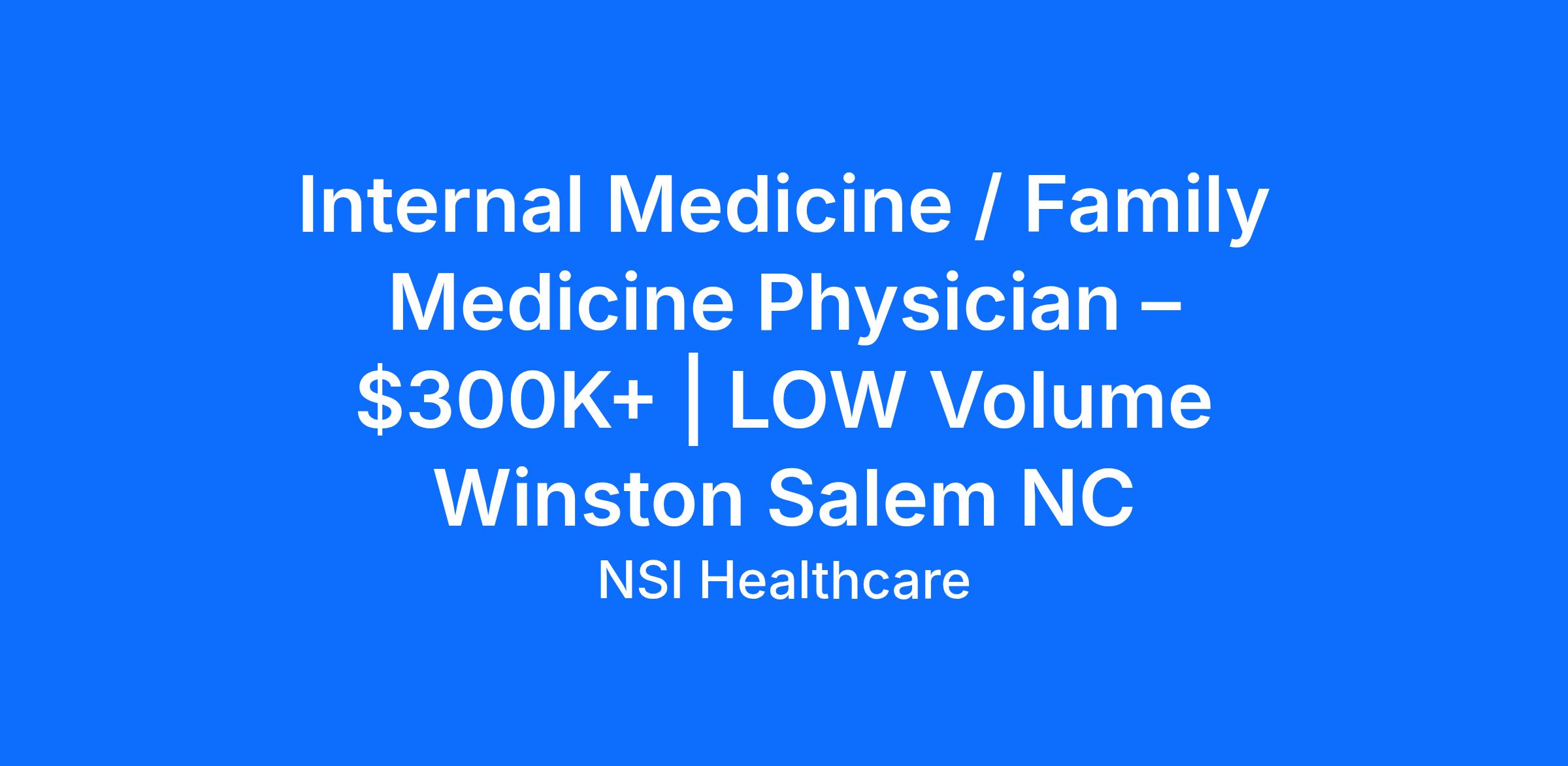 Internal Medicine / Family Medicine Physician - $300K+ | LOW Volume Winston Salem NC