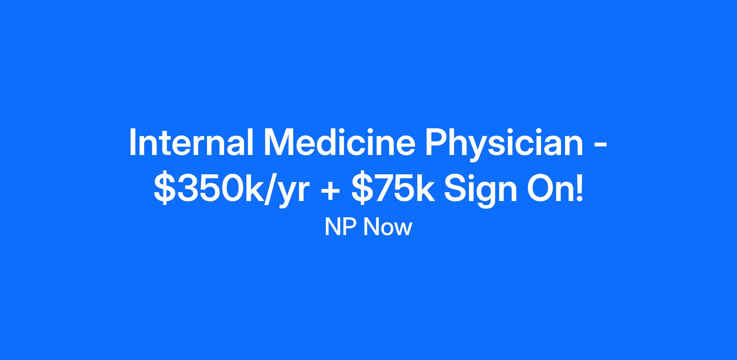 Internal Medicine Physician - $350k/yr + $75k Sign On!