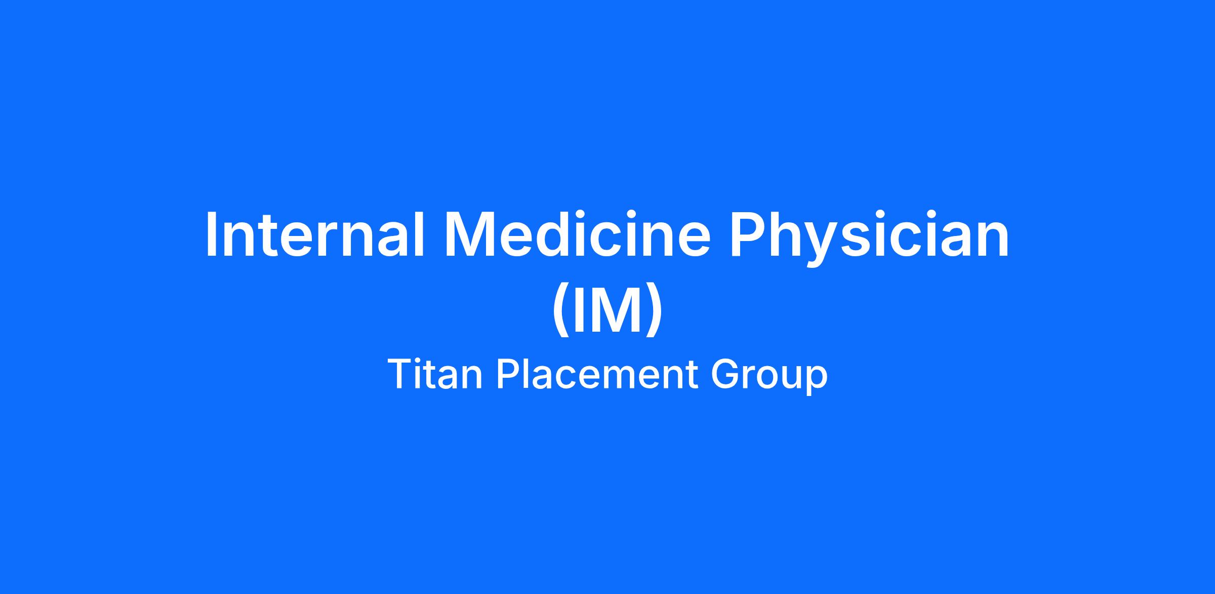 Titan Placement Group is searching for an Internal Medicine Physician in Bangor, Maine.