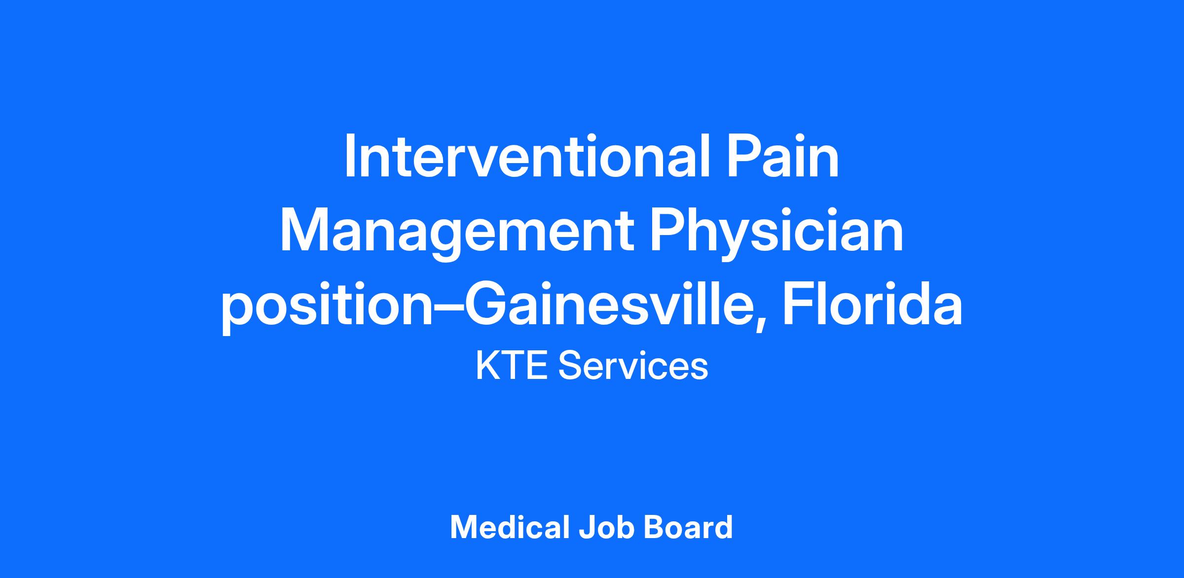 Interventional Pain Management Physician - Gainesville, FL