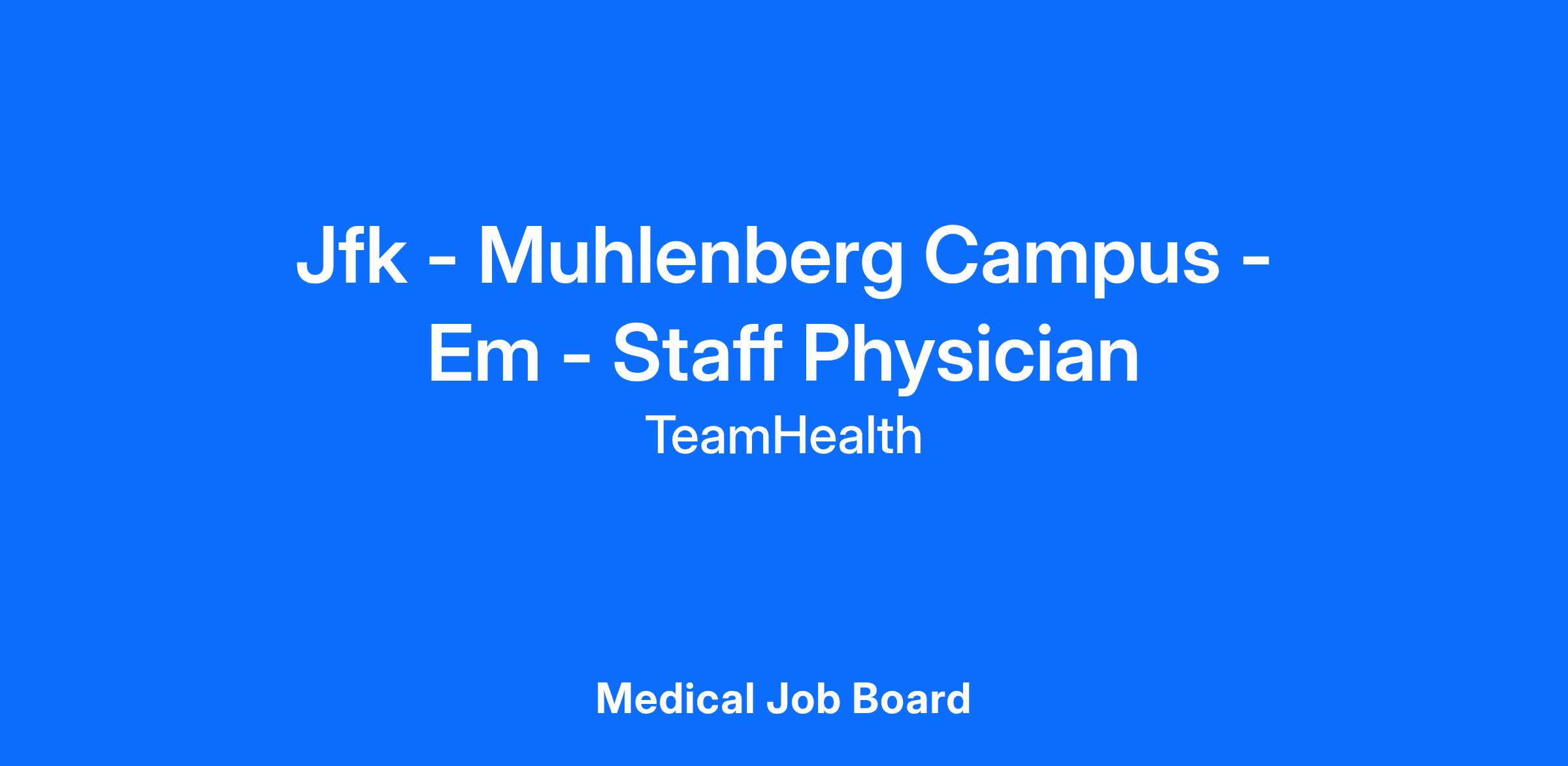 Job DescriptionLooking for extra shifts at a smaller practice setting? We would love to have you join our team at JFK Muhlenberg in Plainfield, New Jersey! This Satellite ED (SED) of JFK University Medical Center offers flexible scheduling with per diem and part-time options and 12-hour shifts for your convenience. Providing care to the Plainfield community for the last decade, JFK Muhlenberg is part of the renowned Hackensack Meridian Health (HMH) network. Caring for 16,000 patients annually alongside our APCs, physicians will enjoy EPIC EMR, nearby transferring facilities, and the support of a dedicated medical director.