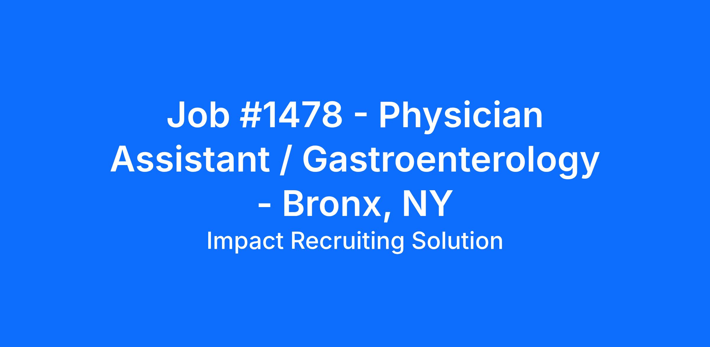 JOB TITLE (#1478): Physician Assistant / Gastroenterology - Bronx, NY