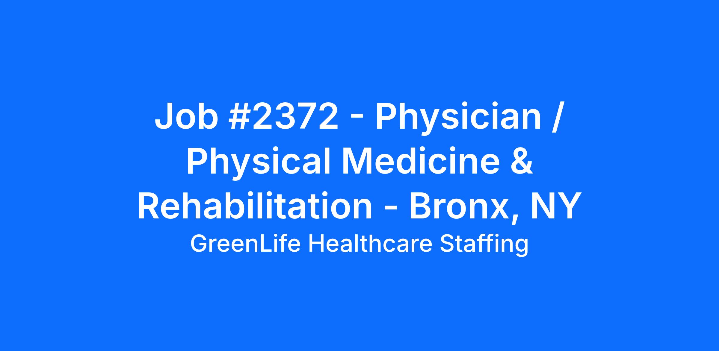 JOB TITLE (#2372): Physician / Physical Medicine & Rehabilitation - Bronx, NY