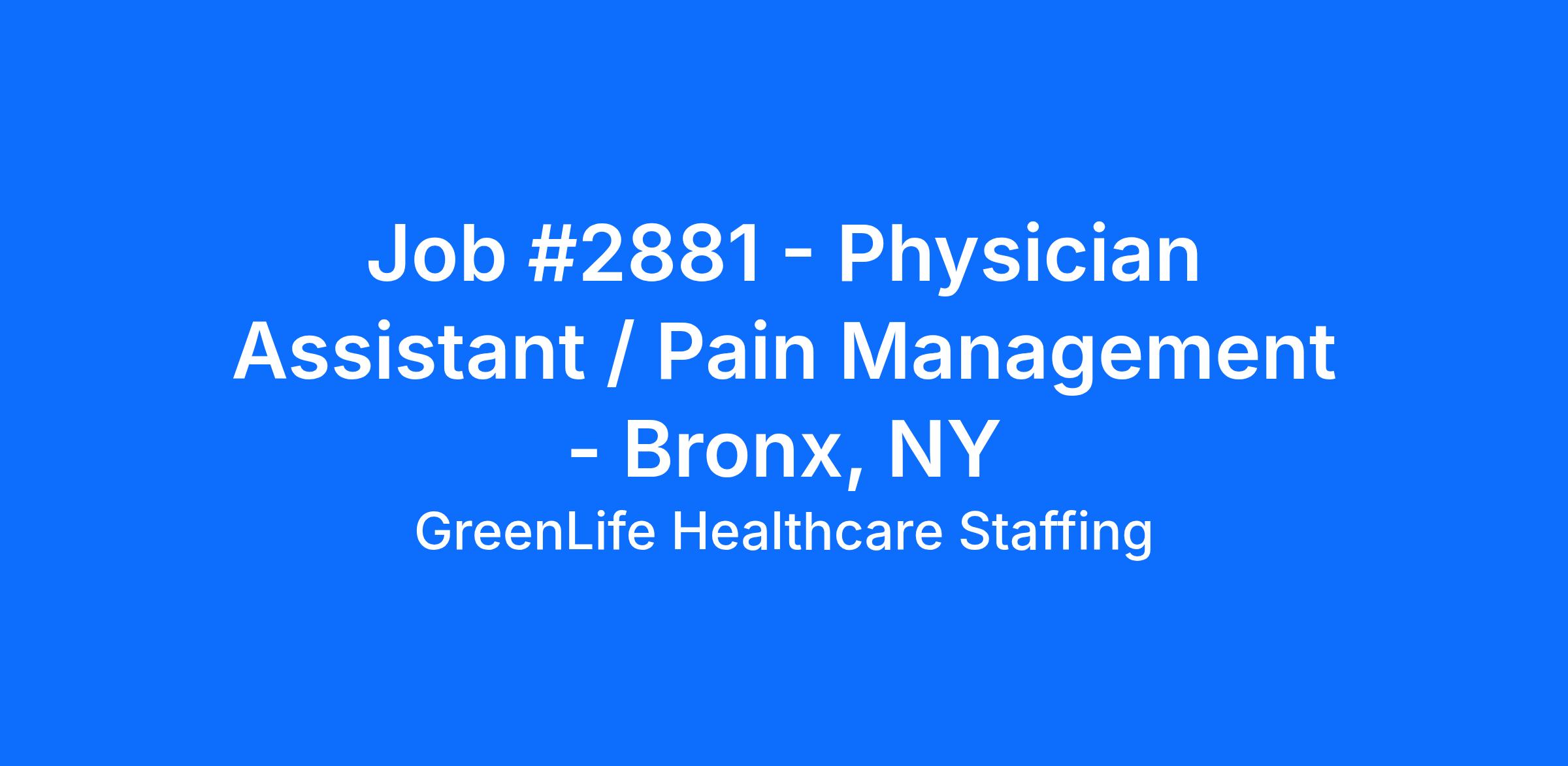 Physician Assistant / Pain Management - Bronx, NYΒ (#2881)