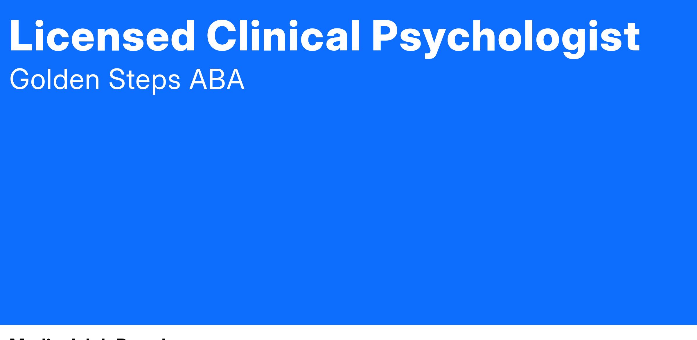 We are seeking both full and part time Clinical Psychologist Providers to conduct diagnostic evaluations for children who may have autism spectrum disorders (ASD). In addition to evaluation and diagnosis, the evaluation process will help to identify a child's specific strengths and weaknesses and guides appropriate recommendations for treatment and intervention. This position is ideal for an individual who wants to make a difference with a growing organization and looking to positively impact the future of ABA!