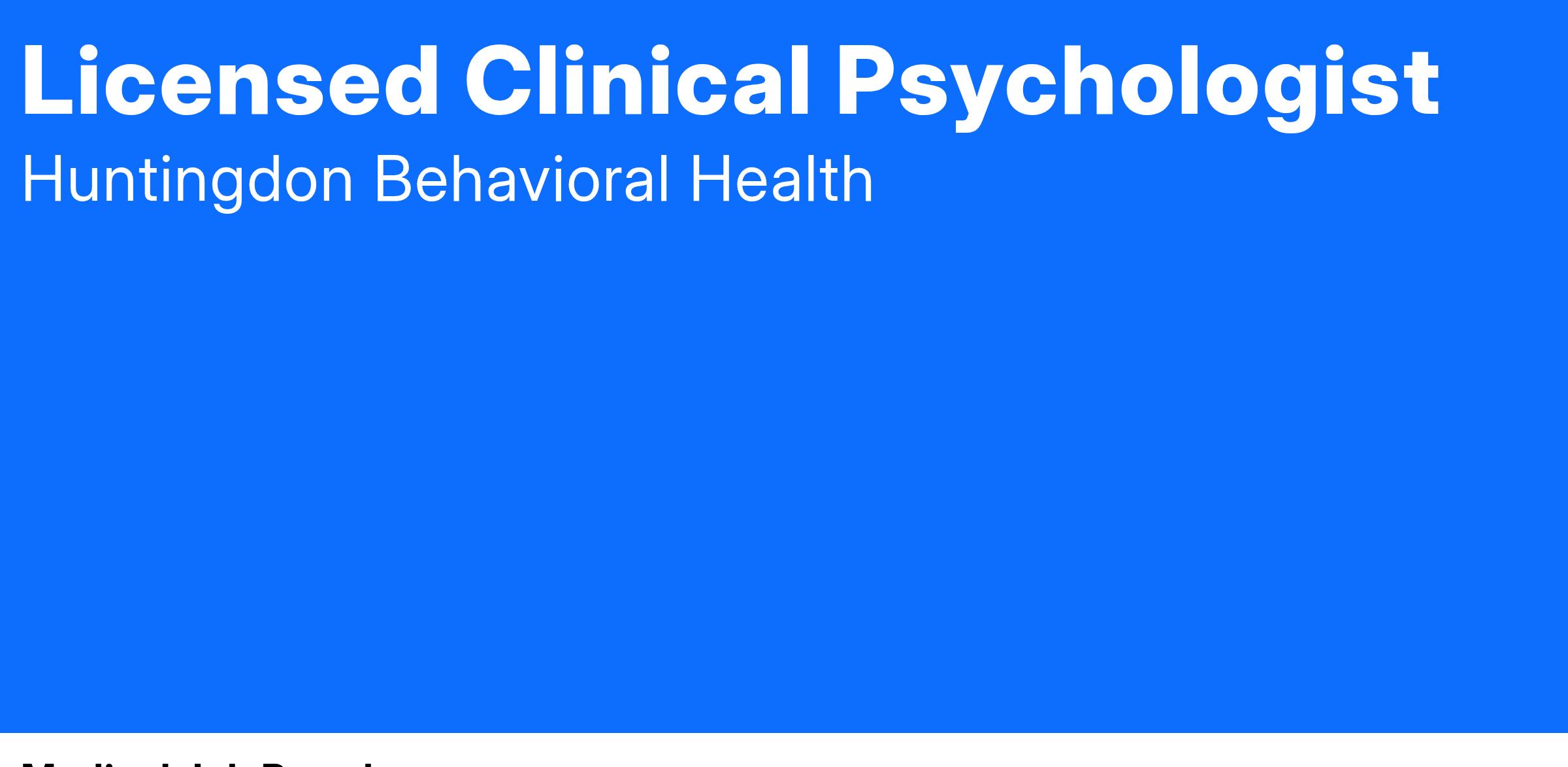 In this challenging economic time for healthcare providers, Huntingdon Behavioral Health continues to experience unprecedented growth. As a recognized leader in behavioral healthcare, you are assured a secure environment for personal growth and professional stability.